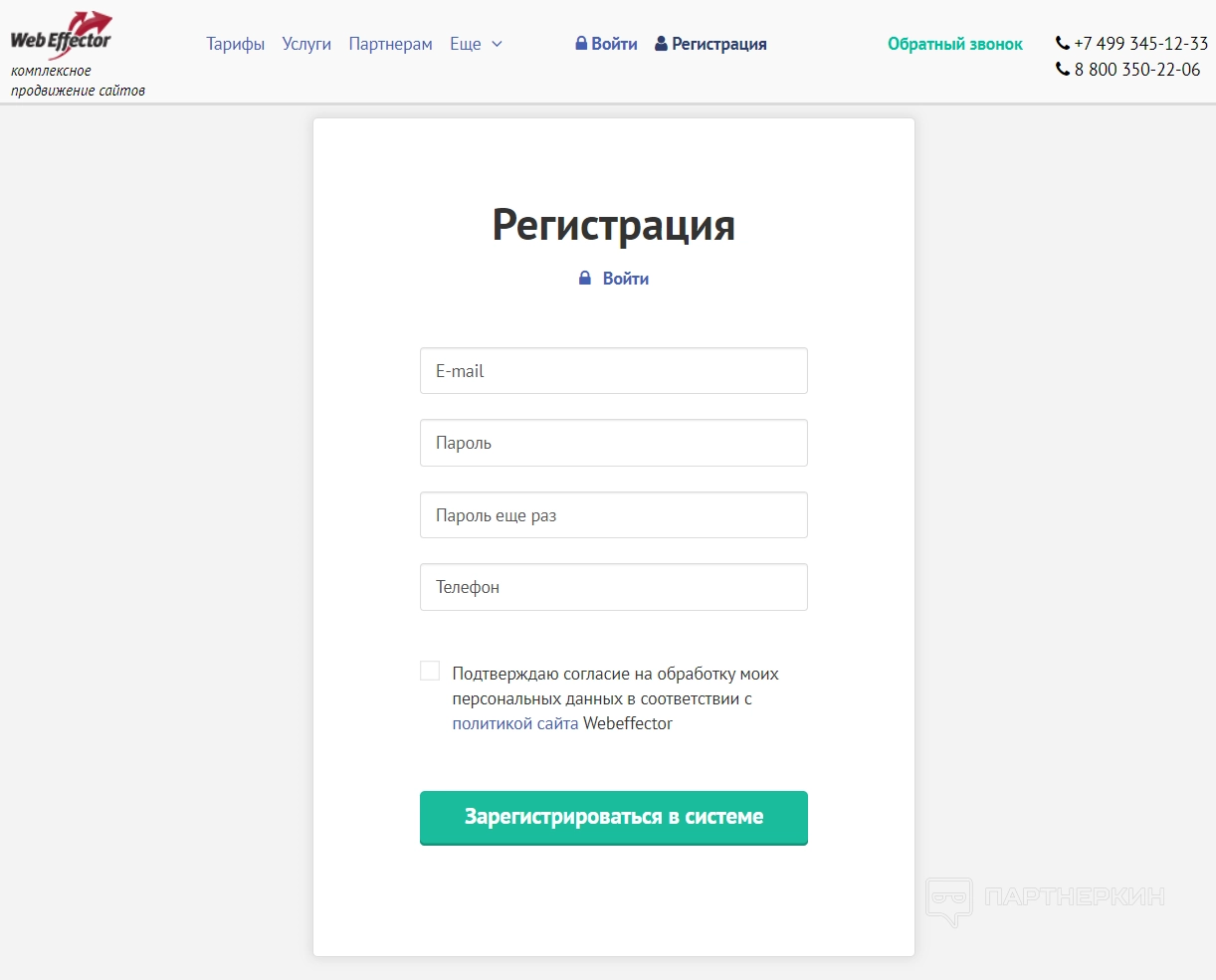 - Ввод данных . Необходимо указать адрес электронной почты, придумать и подтвердить пароль, а также ввести номер телефона. Все поля обязательны для заполнения.