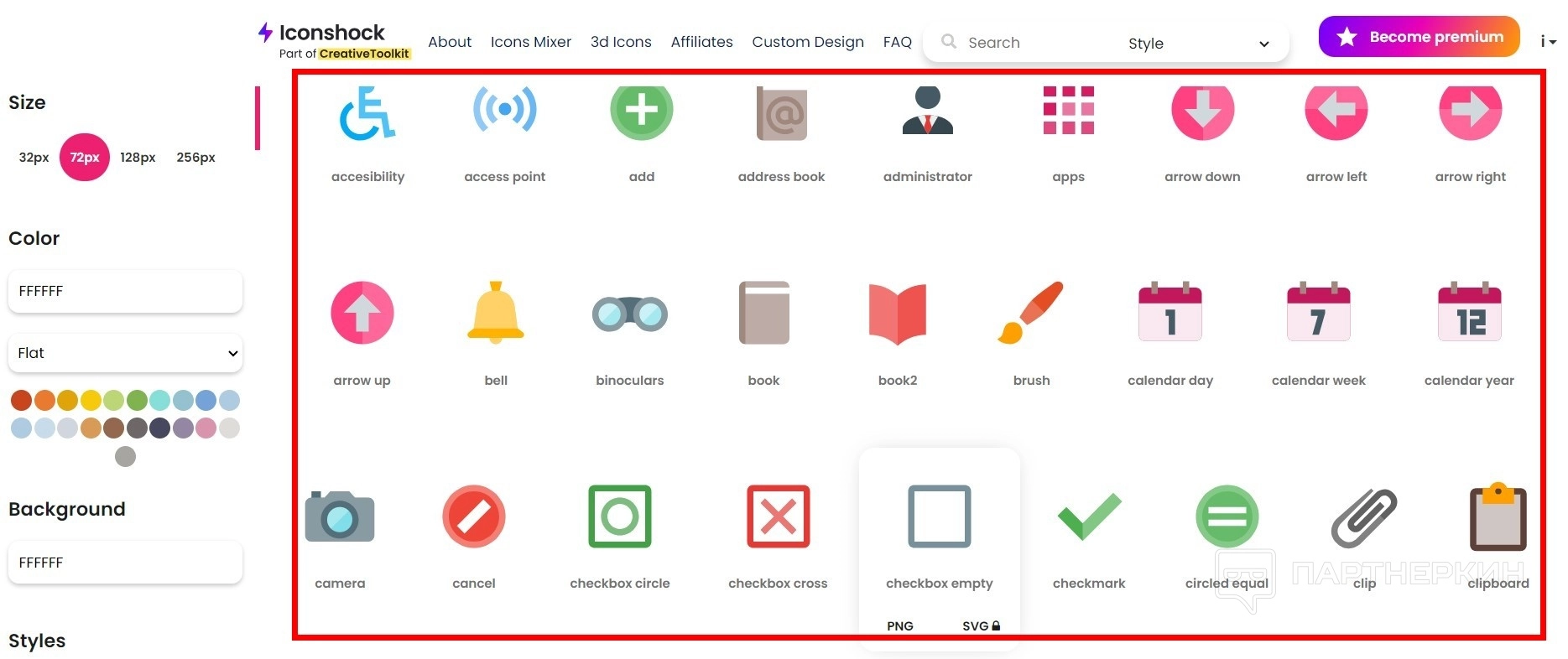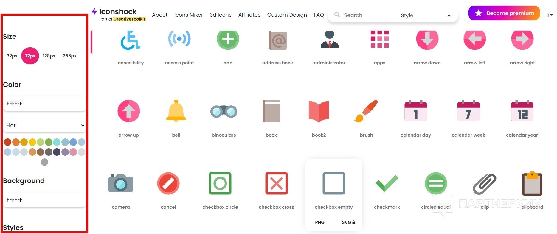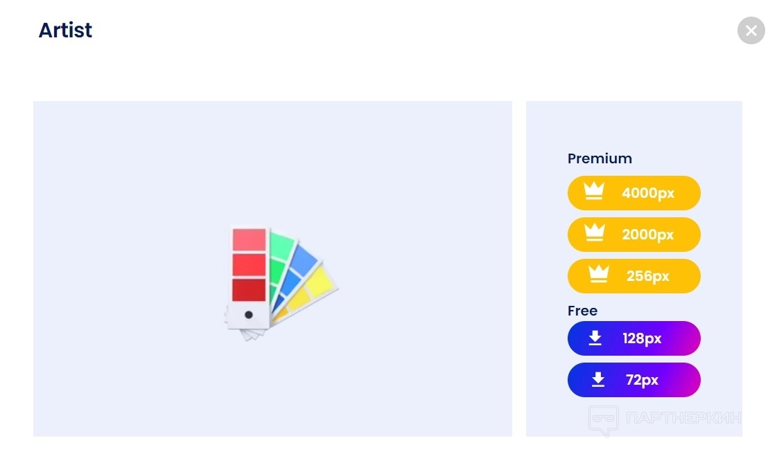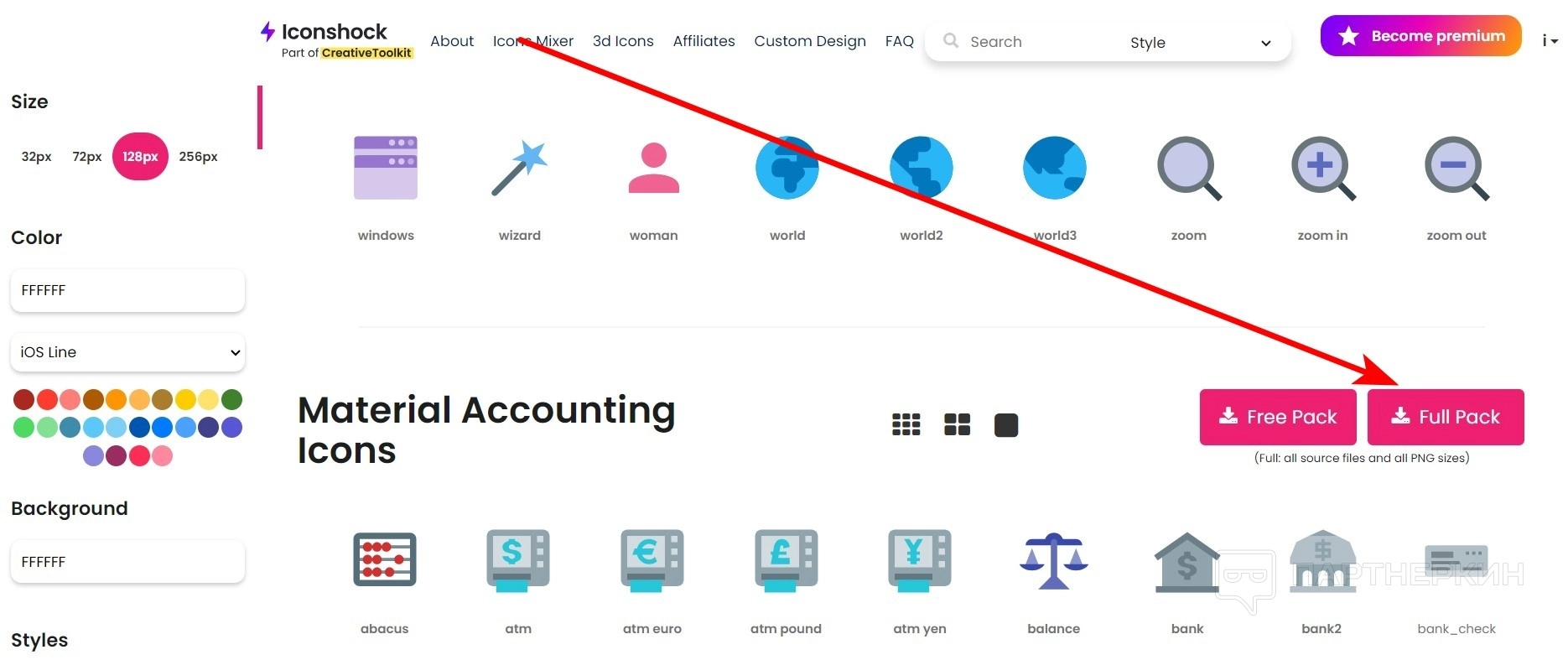 - Full pack (платный вариант) даст возможность загрузить все исходные файлы и все размеры PNG.