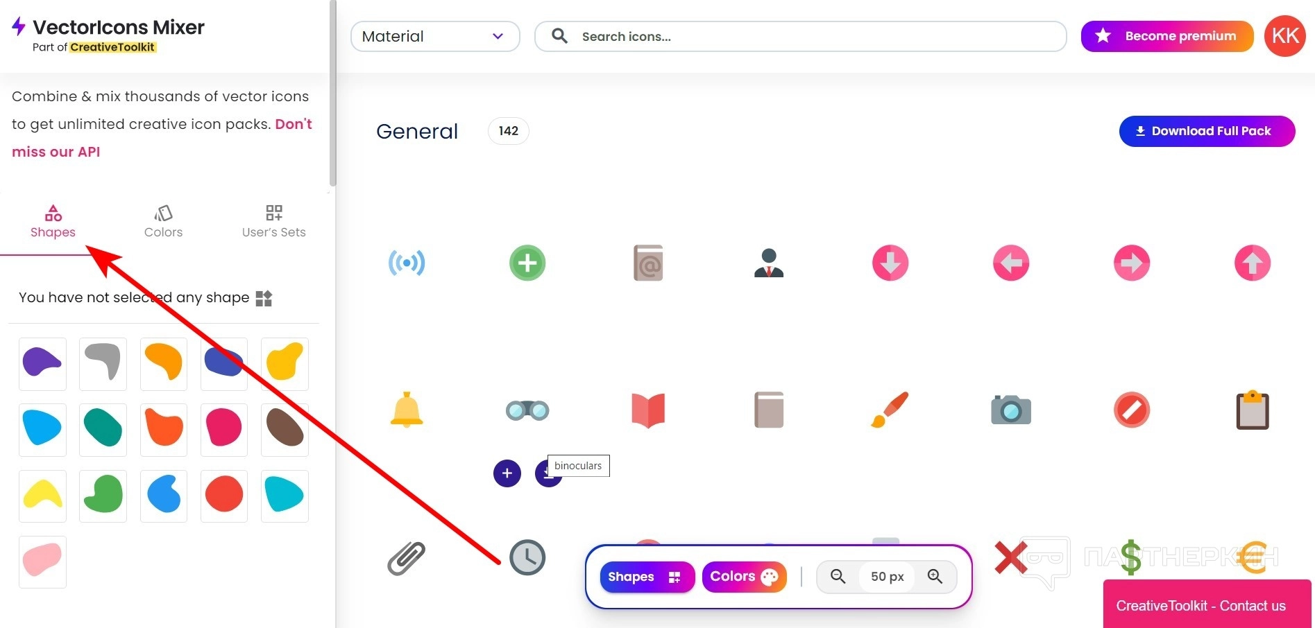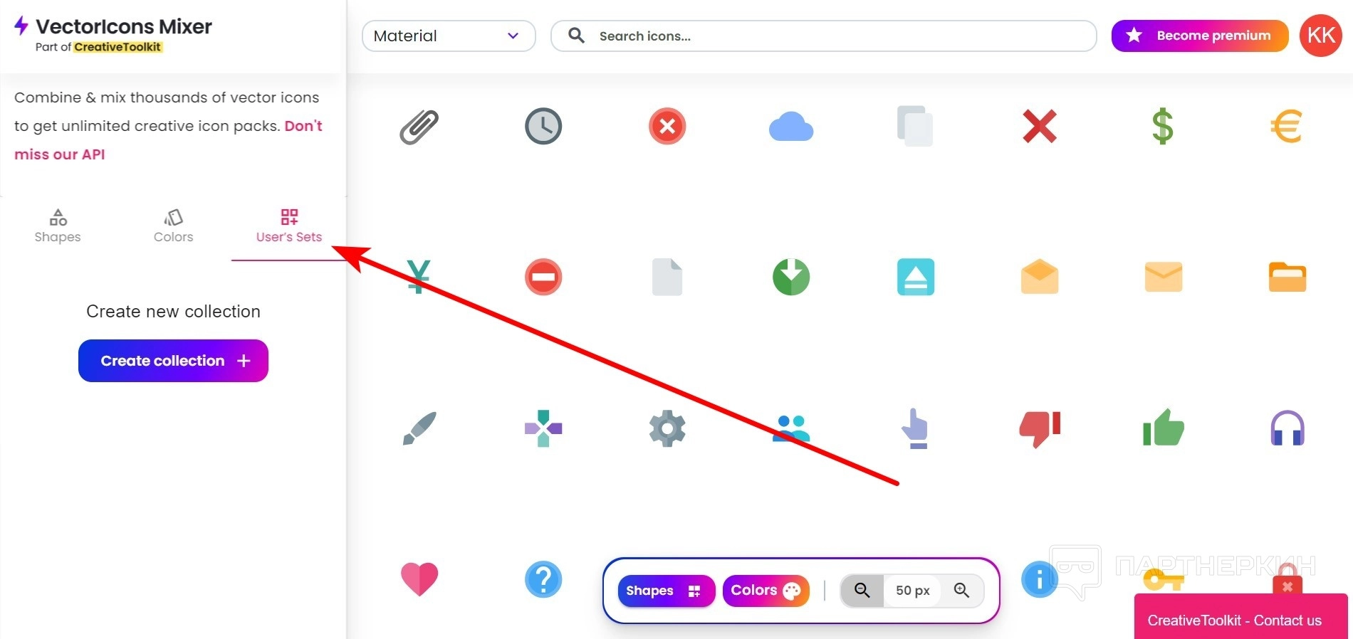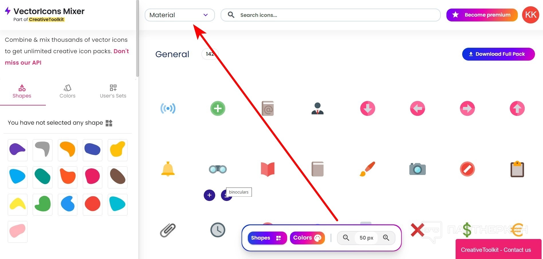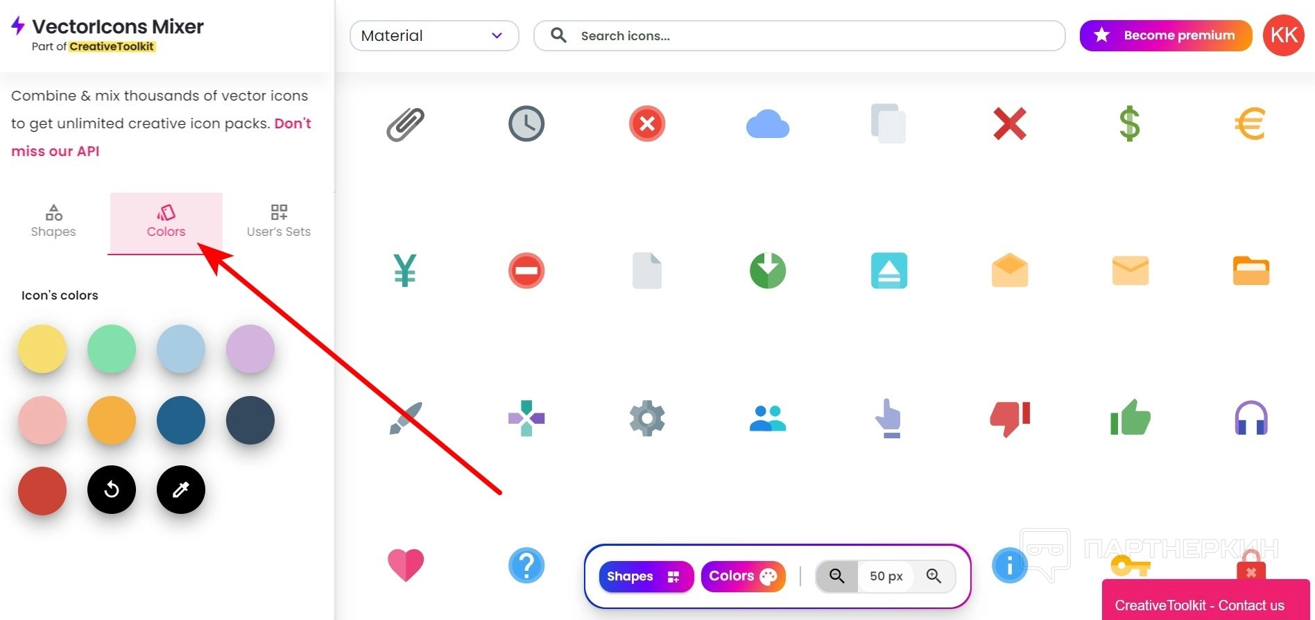 - Перейдите на главной странице в раздел Icons Mixer .