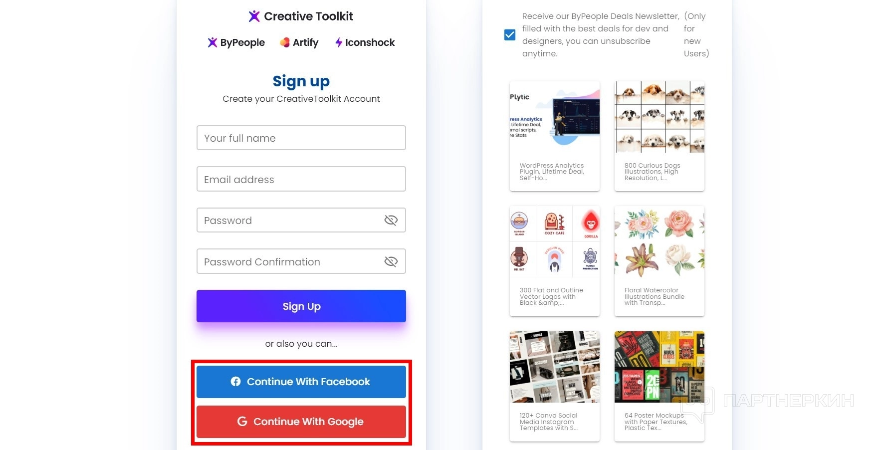 Также платформа предлагает другой способ регистрации. Это использование сторонних аккаунтов с готовой учетной записью. Для этого выберите подходящий сервис (где у вас есть готовый аккаунт). Дальше согласитесь на обработку данных. Система сразу создаст аккаунт, подвязав его к выбранной платформе.