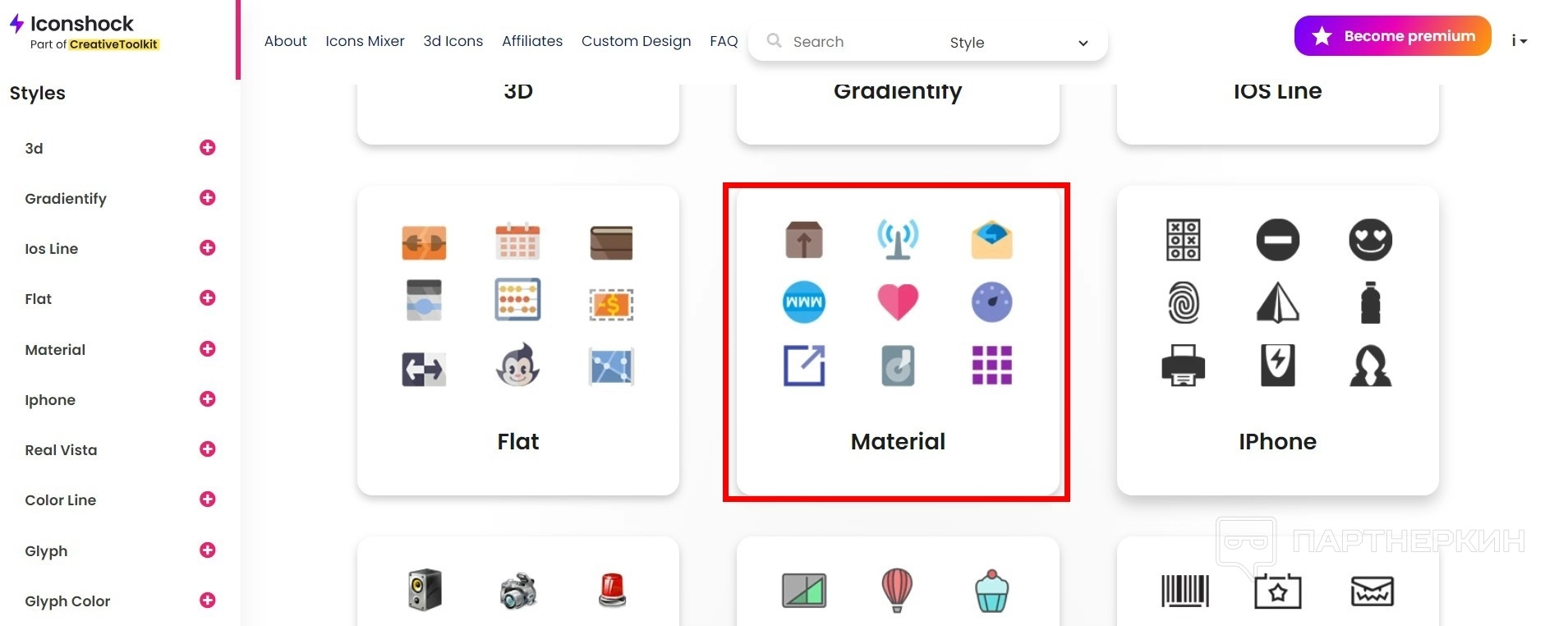 - Найдите нужный пул иконок (например Material).