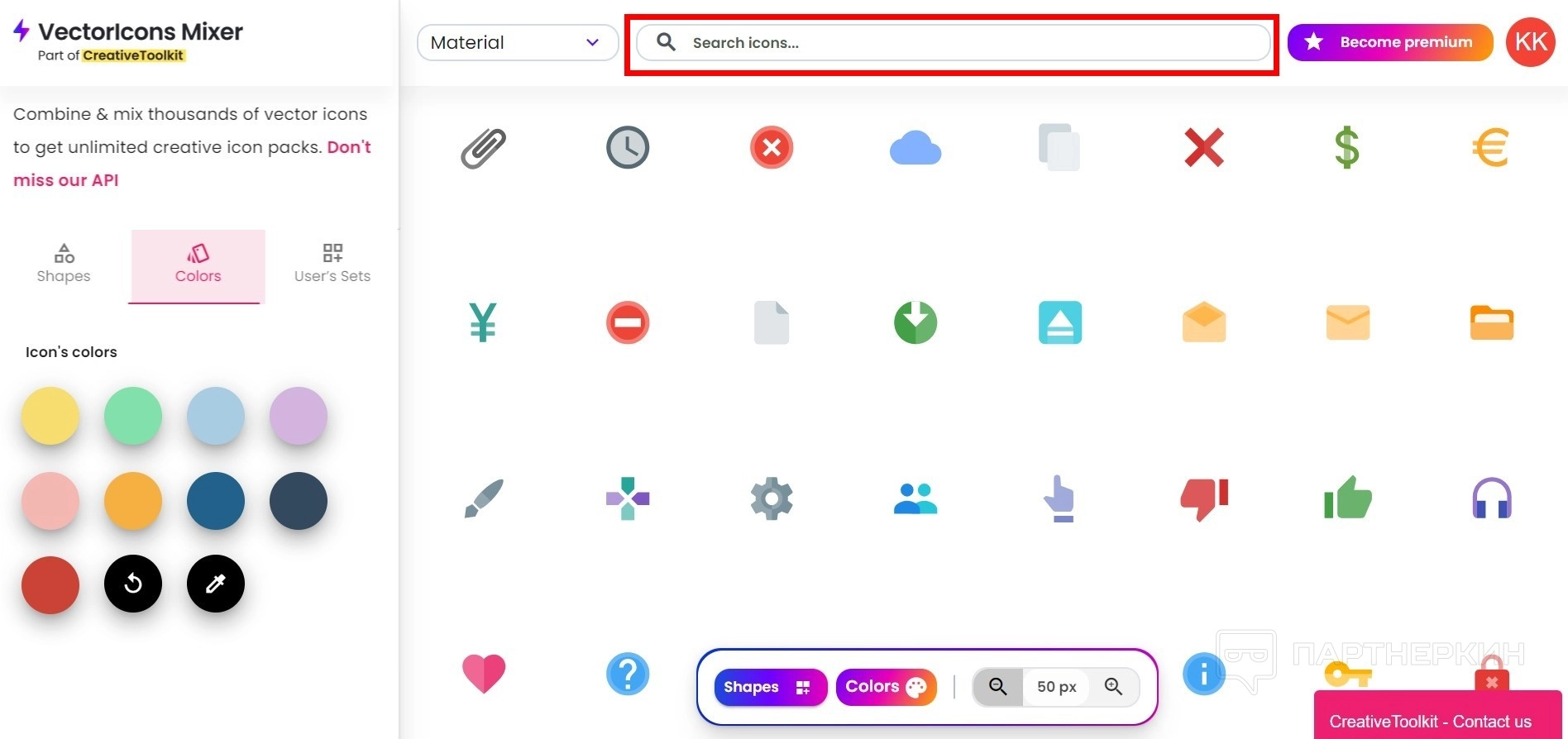 Это инструмент, который дает возможность пользователям объединять и комбинировать тысячи векторных иконок. То есть можно настроить свой шаблон. Дополнительно, API сервиса предоставляет расширенные возможности для интеграции и автоматизации процесса создания иконок.