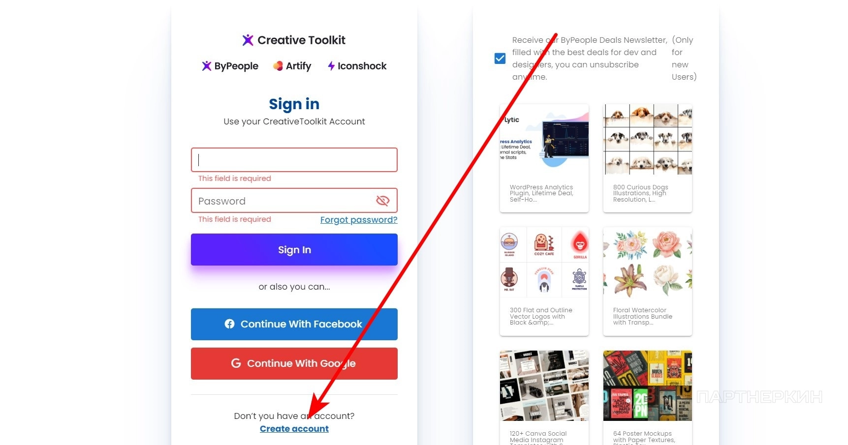 - Перейдите в раздел Create account .