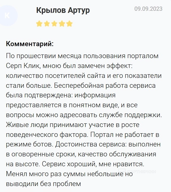 Также пользователи отмечают в качестве существенного плюса, что все накрутки осуществляются живыми людьми, а не ботами, что является более безопасным продвижением и снижает риски попадания под фильтры поисковиков: