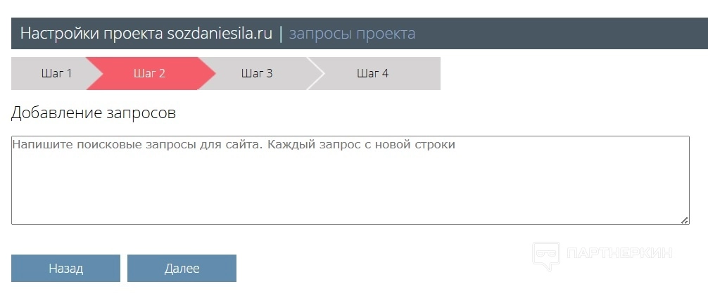 1. Укажите поисковые запросы, которые нужно продвигать.