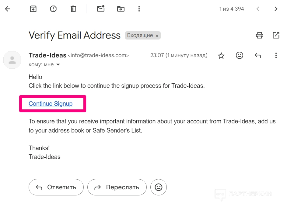 • После регистрации на экране появится сообщение с просьбой проверить электронную почту для подтверждения. В письме нужно нажать на ссылку для завершения регистрации.
