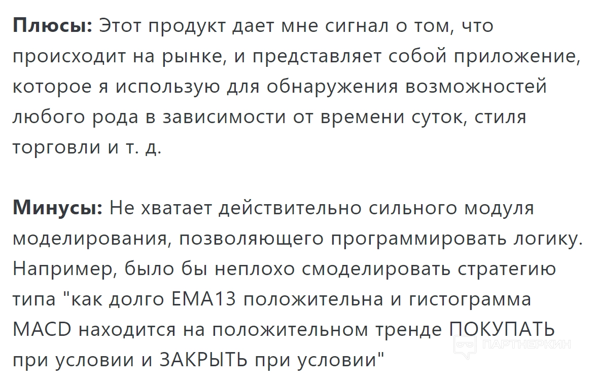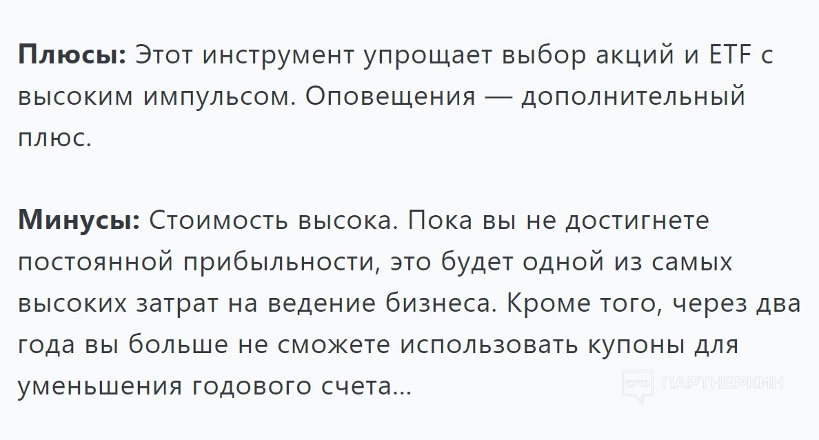 Другие пользователи подчеркивают, что сервис действительно упрощает выбор акций с высоким импульсом, а функция оповещений является хорошим дополнением. В то же время стоимость использования платформы для некоторых кажется слишком высокой: