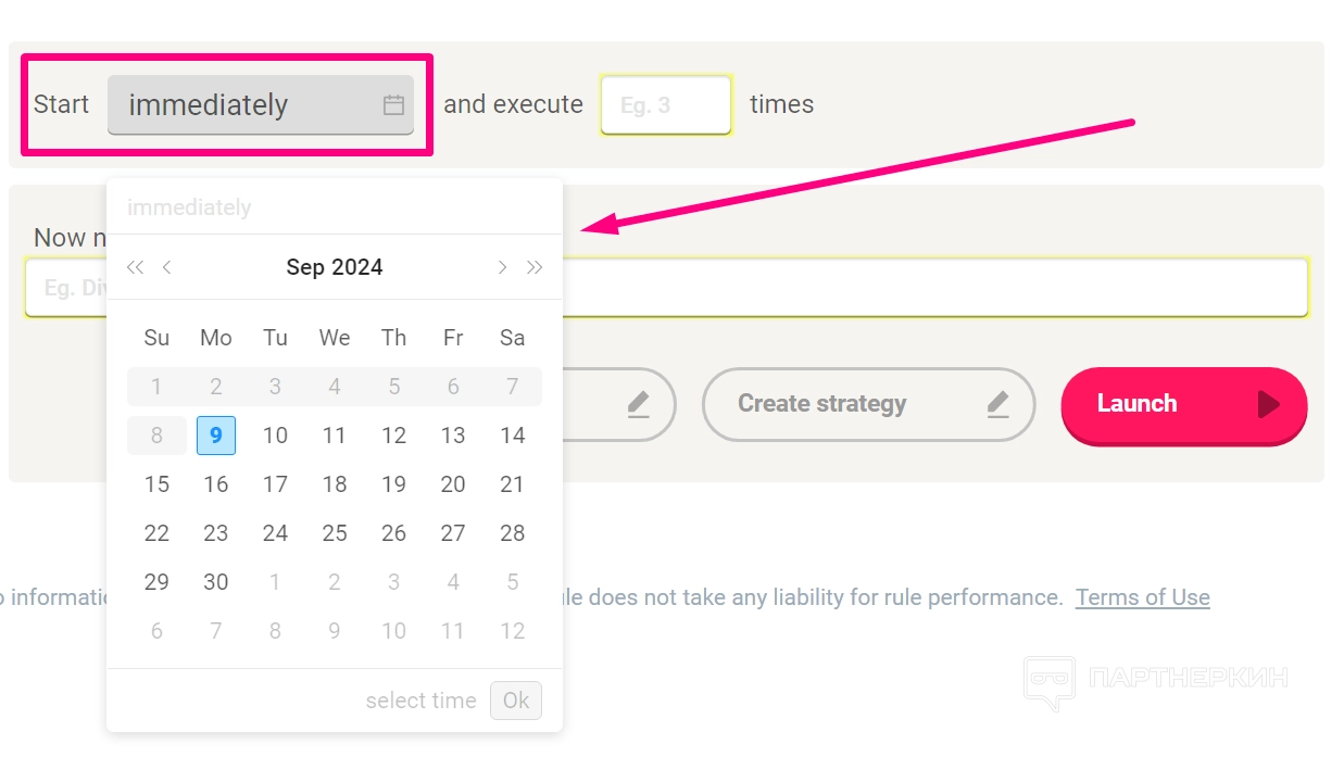 Здесь можно выбрать, когда именно правило должно начать действовать — например, можно выбрать опцию Start immediately и выбрать конкретную дату на календаре.
