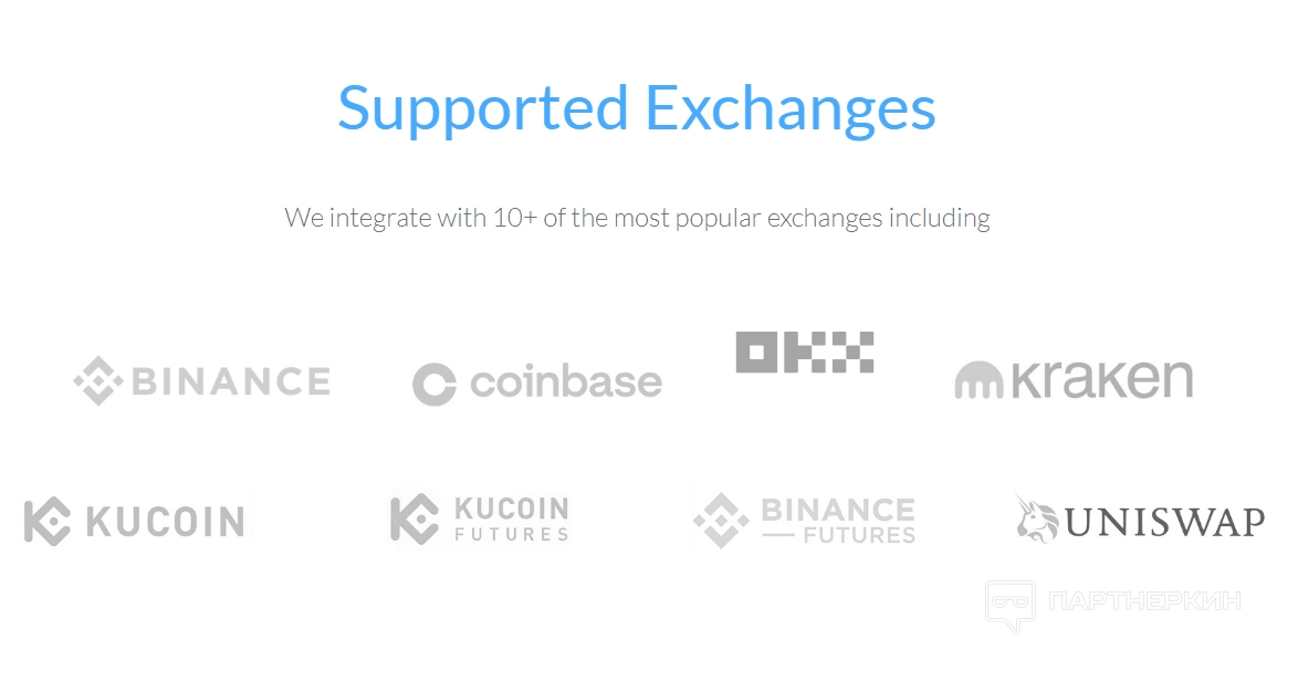 Платформа поддерживает множество популярных криптобирж, таких как Binance и Kraken, что дает свободу выбора места для торговли.