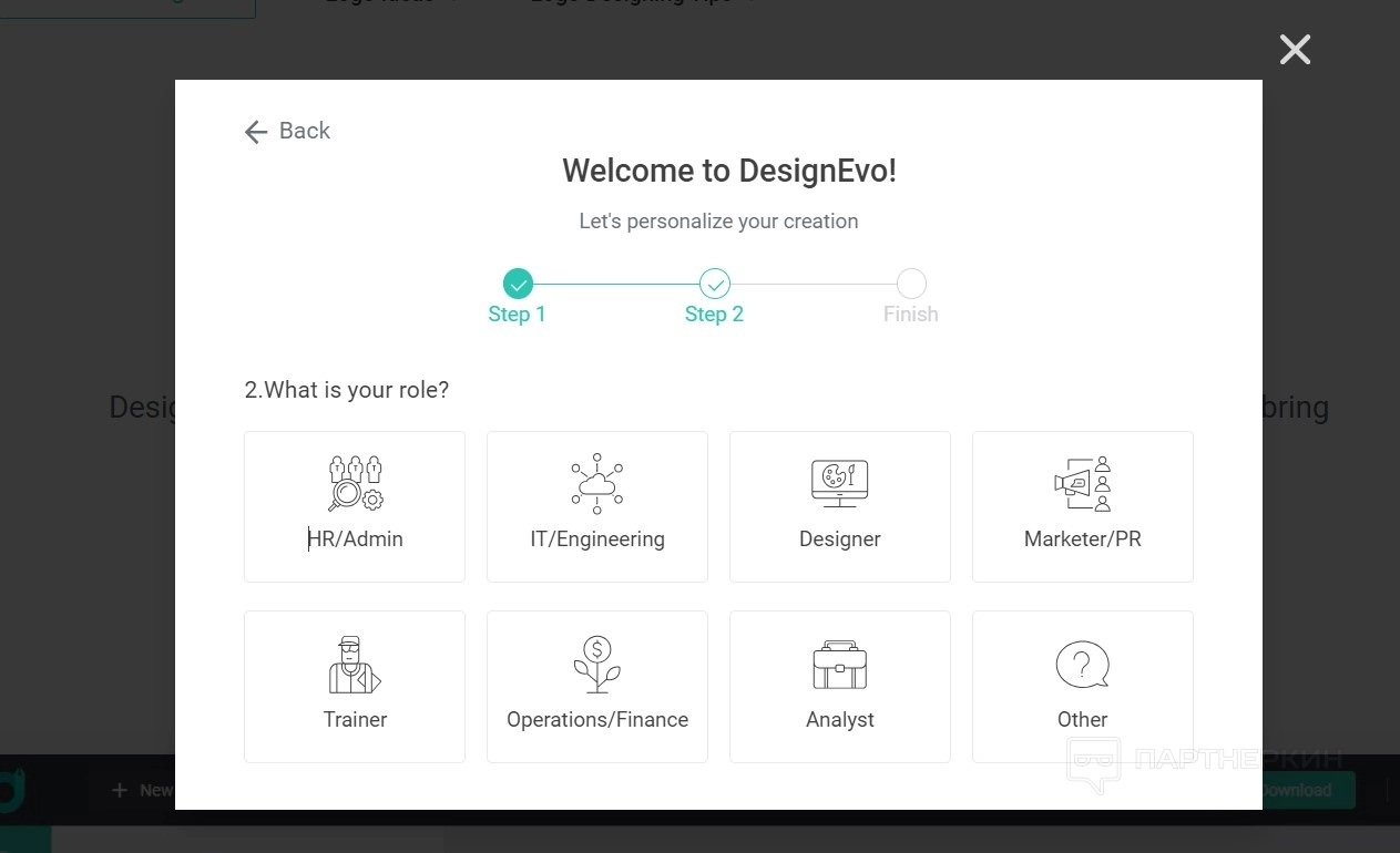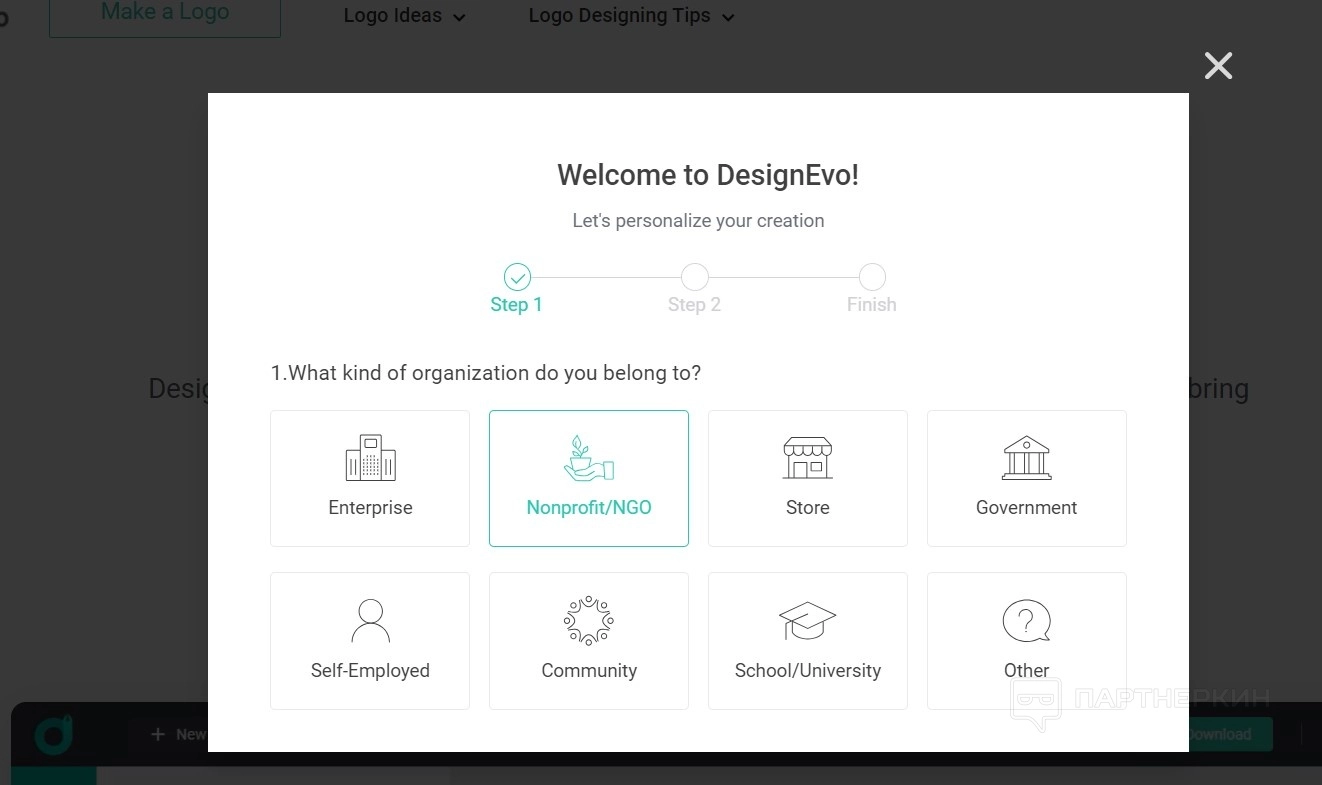 - Дальше персонализируйте ваш аккаунт. Ответьте на вопросы, чтобы система смогла подобрать логотип отвечающий вашему бренду. В частности, к какой сфере деятельности относится фирма.