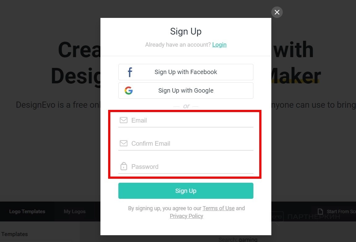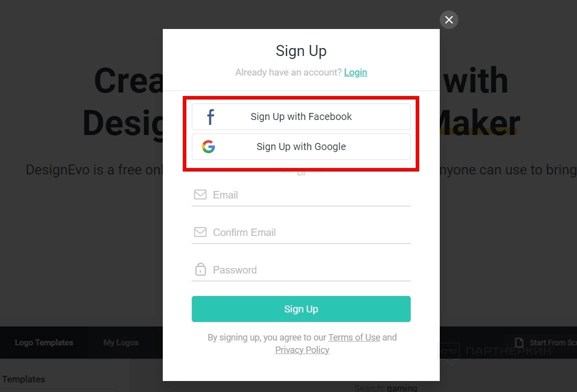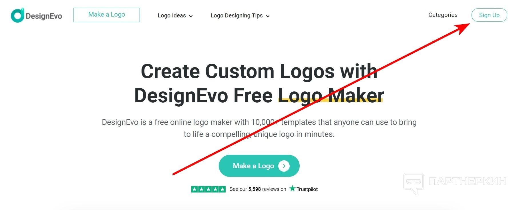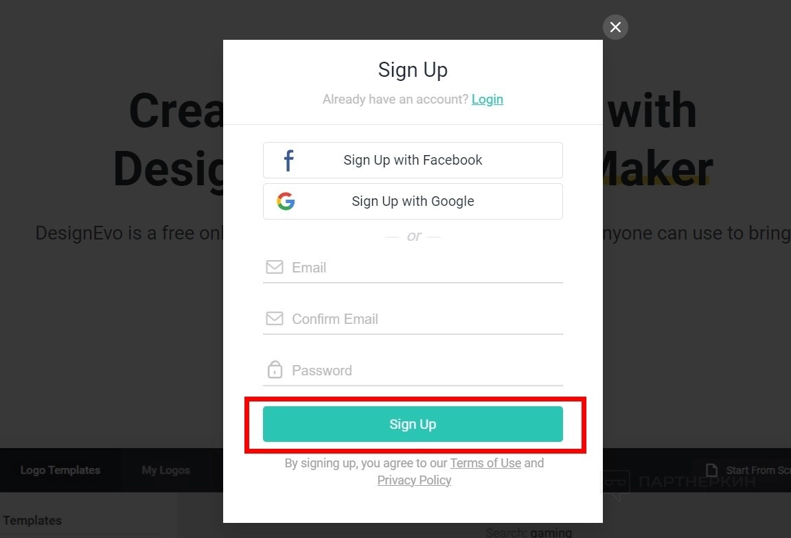 - Нажмите на кнопку Sign Up .