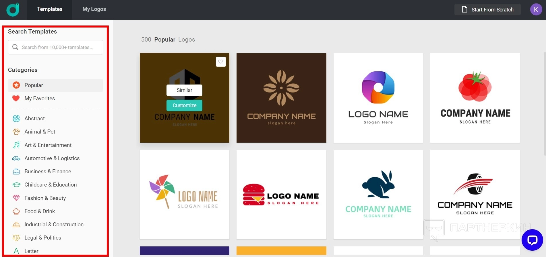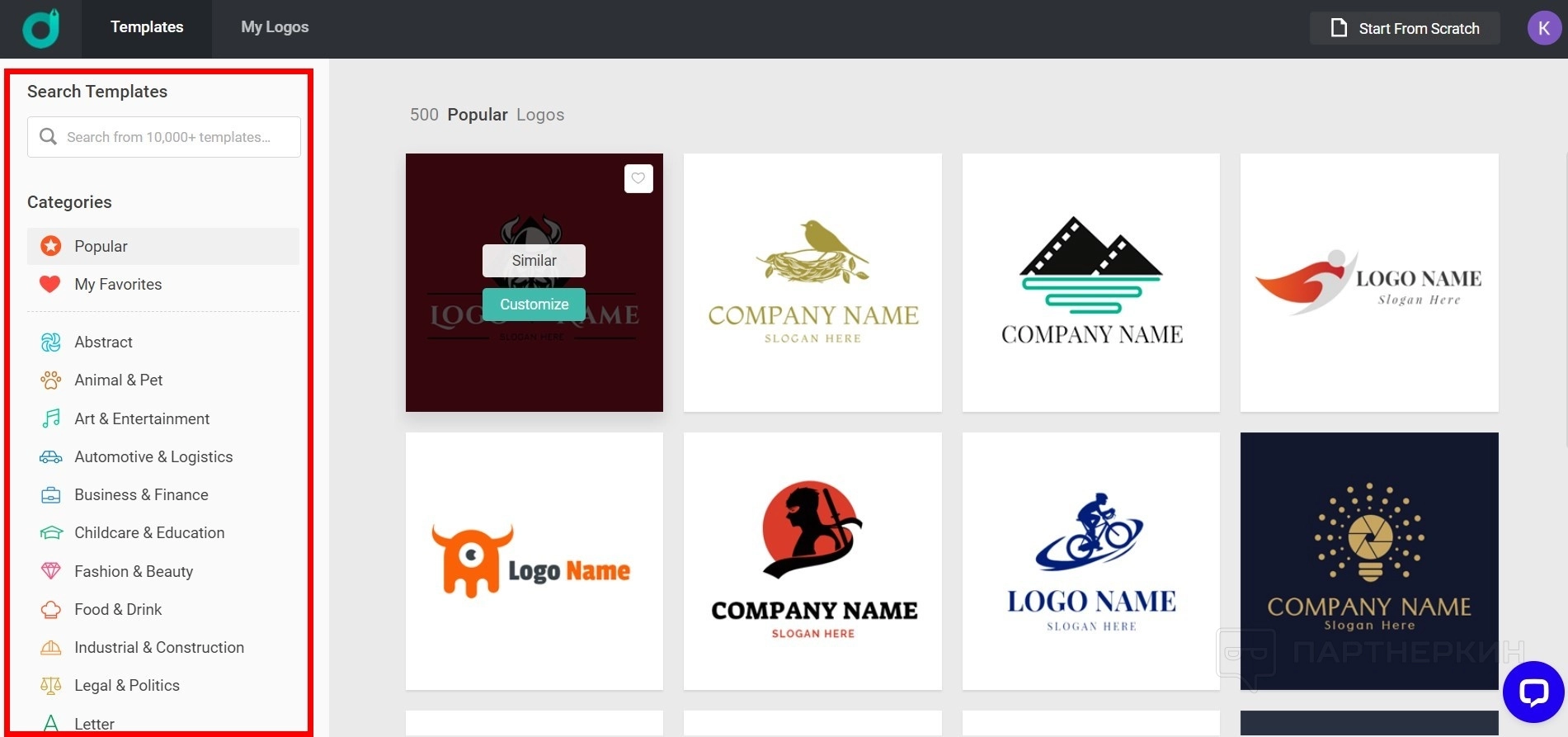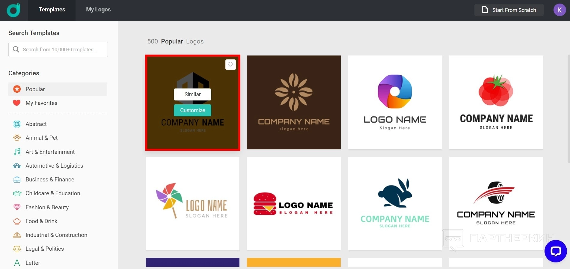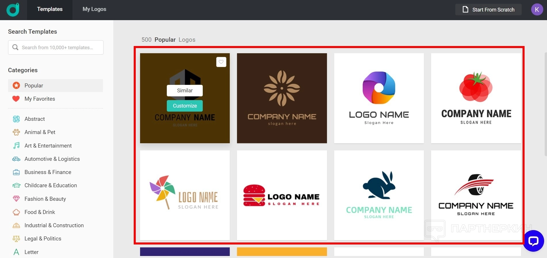 Сервис предлагает более 10 000 различных дизайнов. Хотя не все логотипы в библиотеке