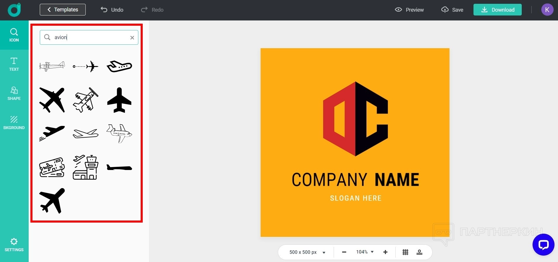 Предлагает загрузку логотипов в высоком разрешении и удаление водяного знака