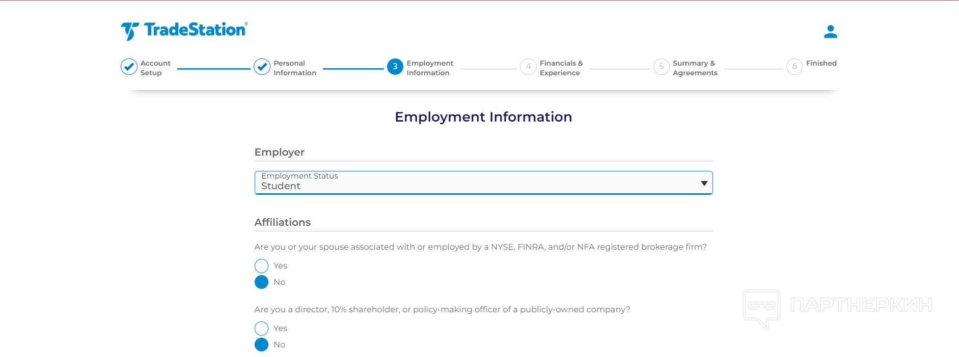 2. Employment Information — информация о месте работы, включая должность и род деятельности. Это помогает оценить финансовые возможности и уровень вовлеченности в инвестиции.