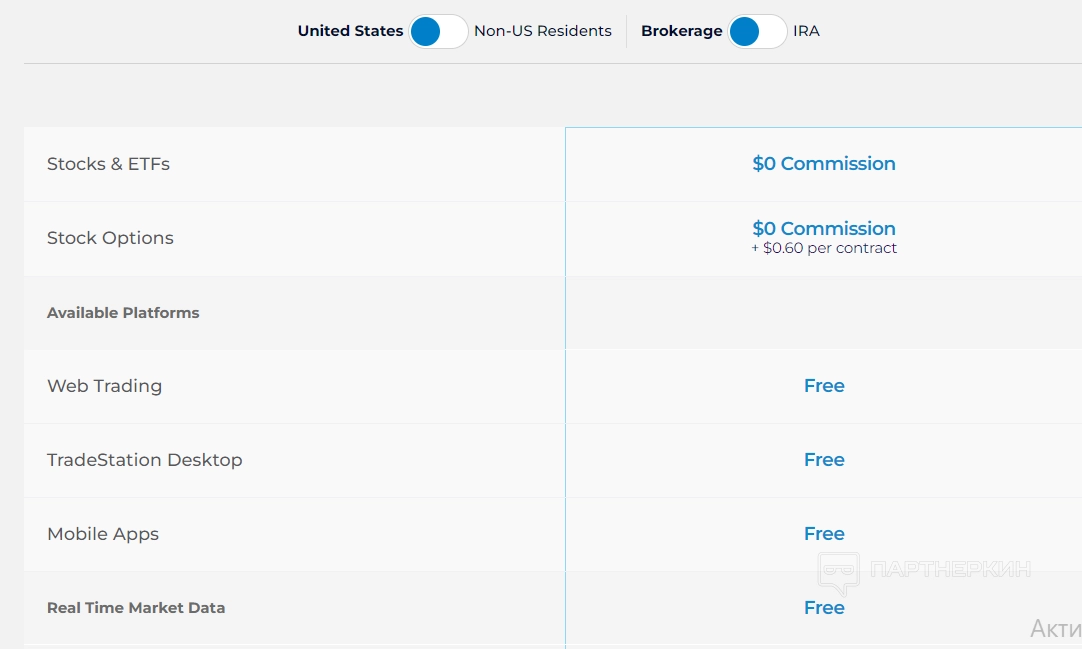 — бесплатны для всех пользователей. Это делает доступ к торговле удобным на разных устройствах. Также пользователь получает бесплатный доступ к данным по акциям, ETF, опционам на акции, фьючерсам и индексам в реальном времени, что помогает принимать решения на основе актуальной информации.