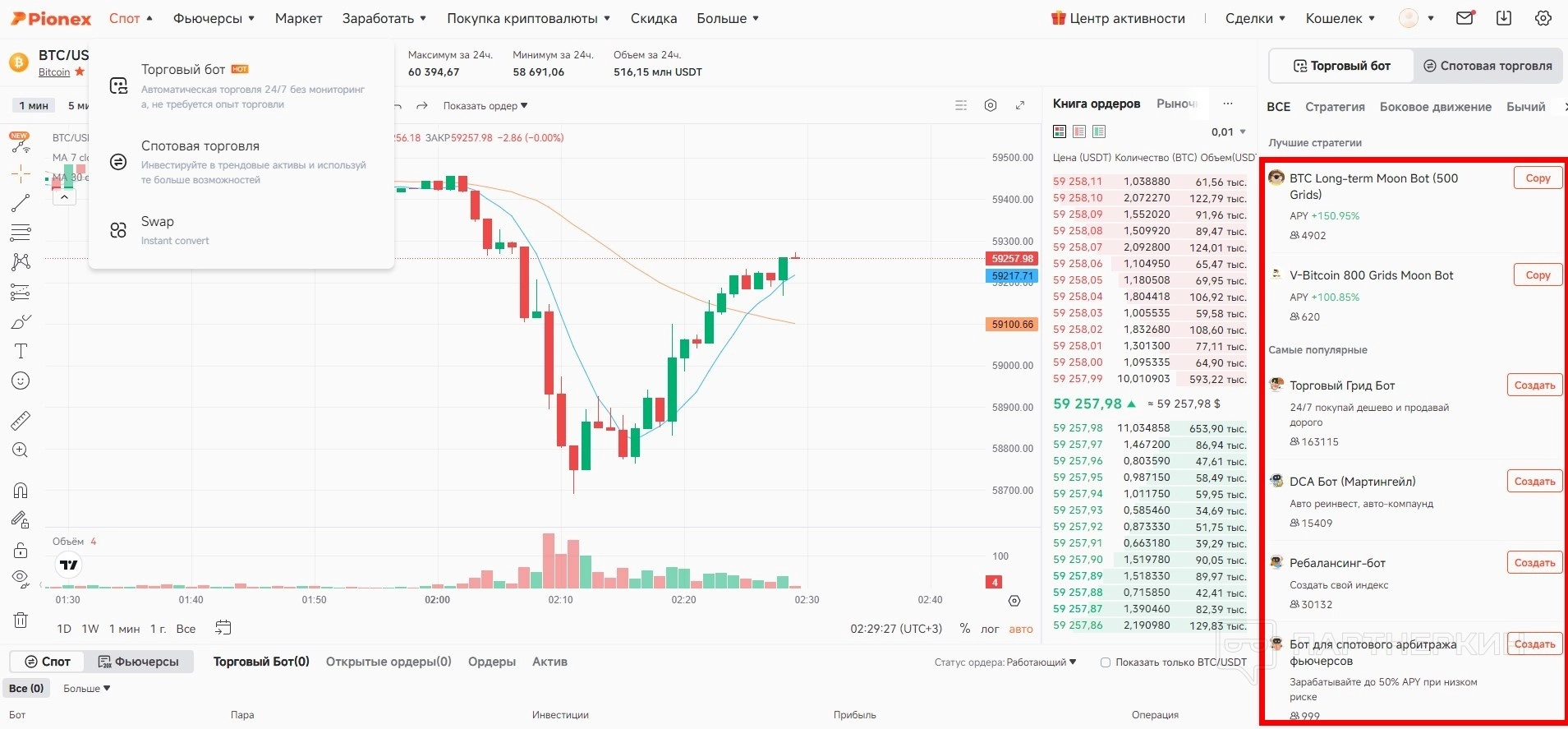 Особое внимание уделяется встроенным торговым ботам, которые адаптируются к потребностям пользователей. В отличие от аналогичных решений на других биржах, боты