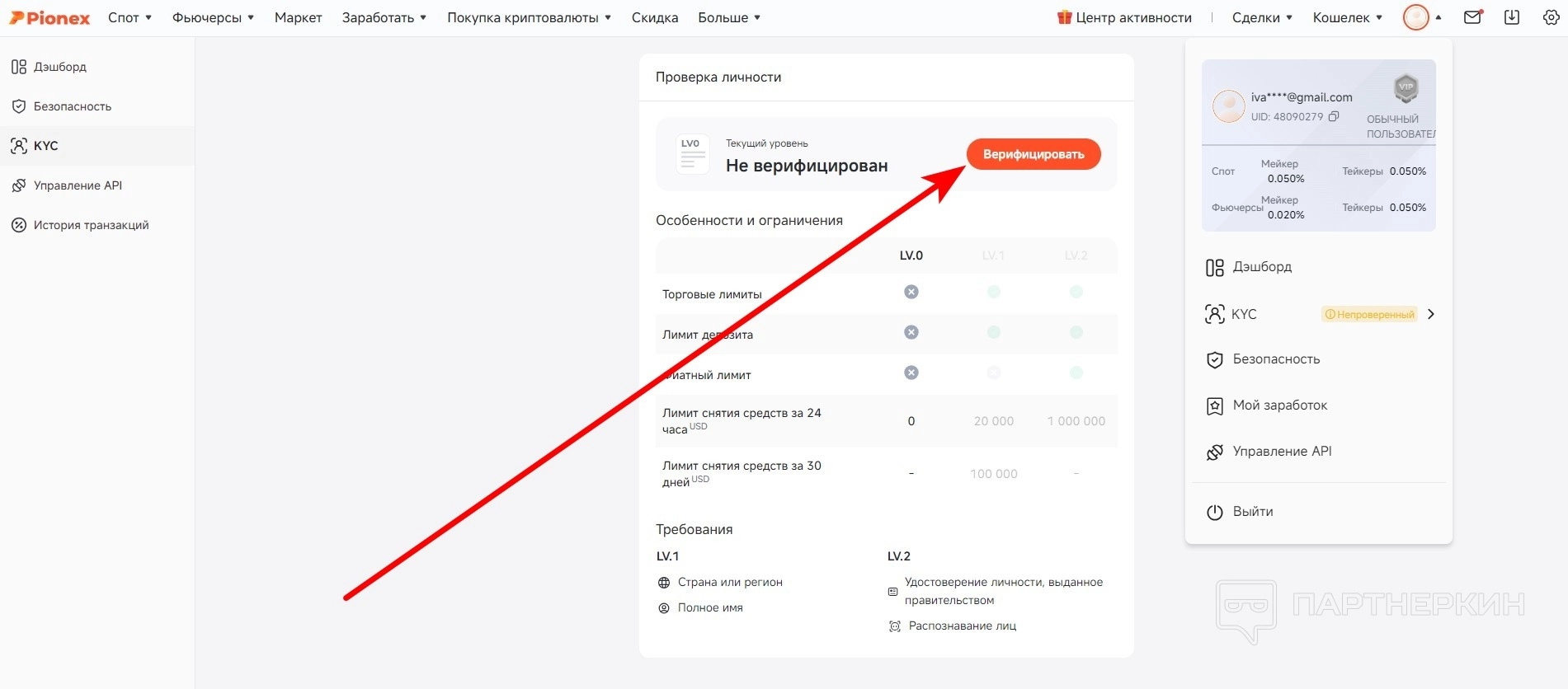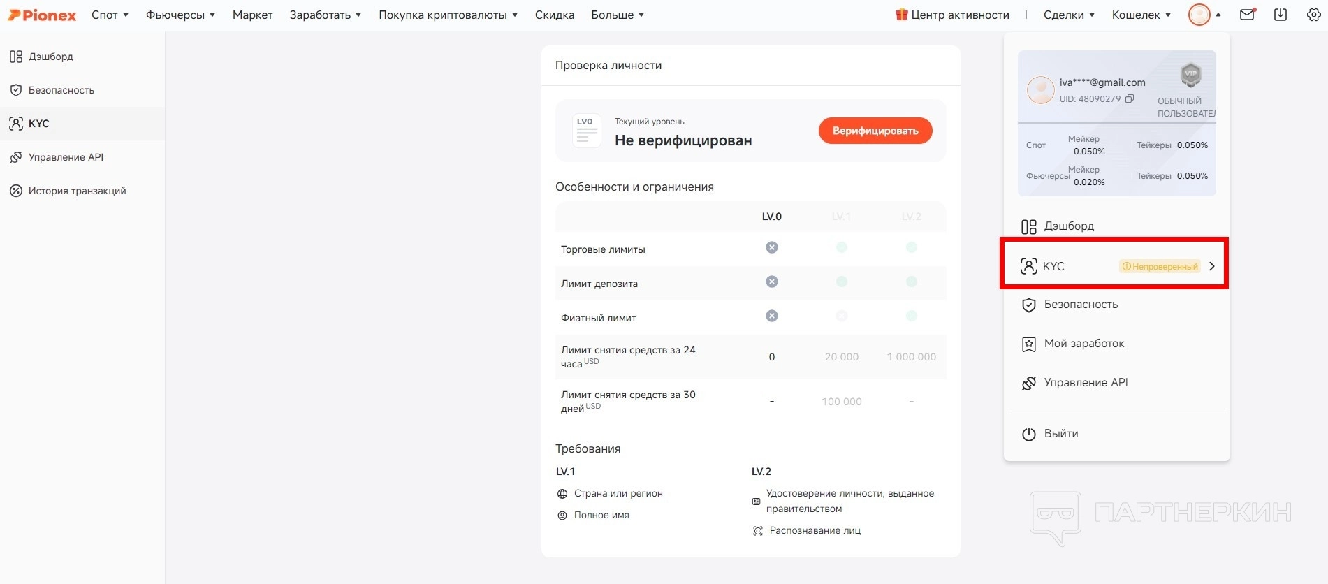 Ежедневные лимиты на вывод средств зависят от уровня верификации KYC:
