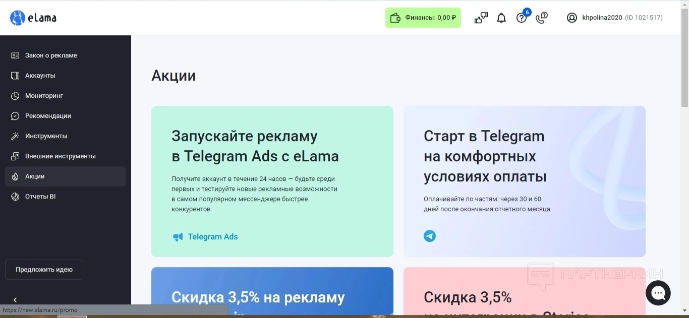 Раздел Акции , который доступен только для зарегистрированных пользователей. Здесь собраны все доступные для использования предложения и услуги, которые не представлены среди инструментов. В основном это предложения от агентства