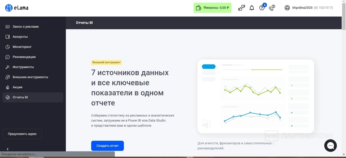 - Отчеты BI — автоматическое создание отчетов по данным из сразу нескольких рекламных и аналитических систем.