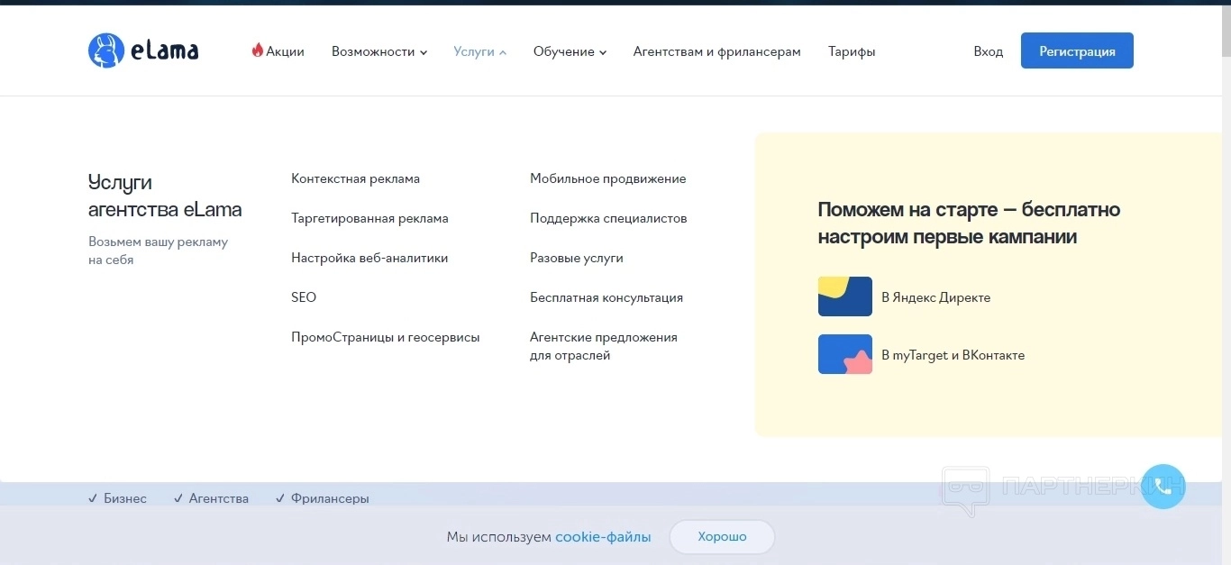 Доступно огромное количество рекламных площадок и сетей, в которых сервис поможет развить свой бизнес. Дополнительно можно приобрести услуги агентства, который может как помочь советом (выдать экспертизу), так и полностью вести кампанию вместо пользователя.