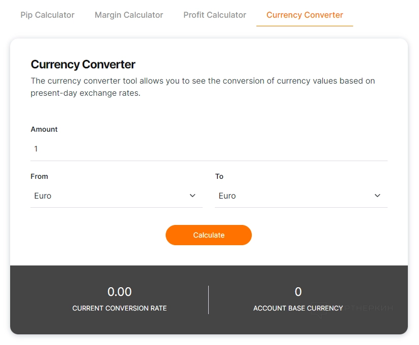 Чтобы получить расчет, укажите валютную пару, объем сделки и валюту счета.
