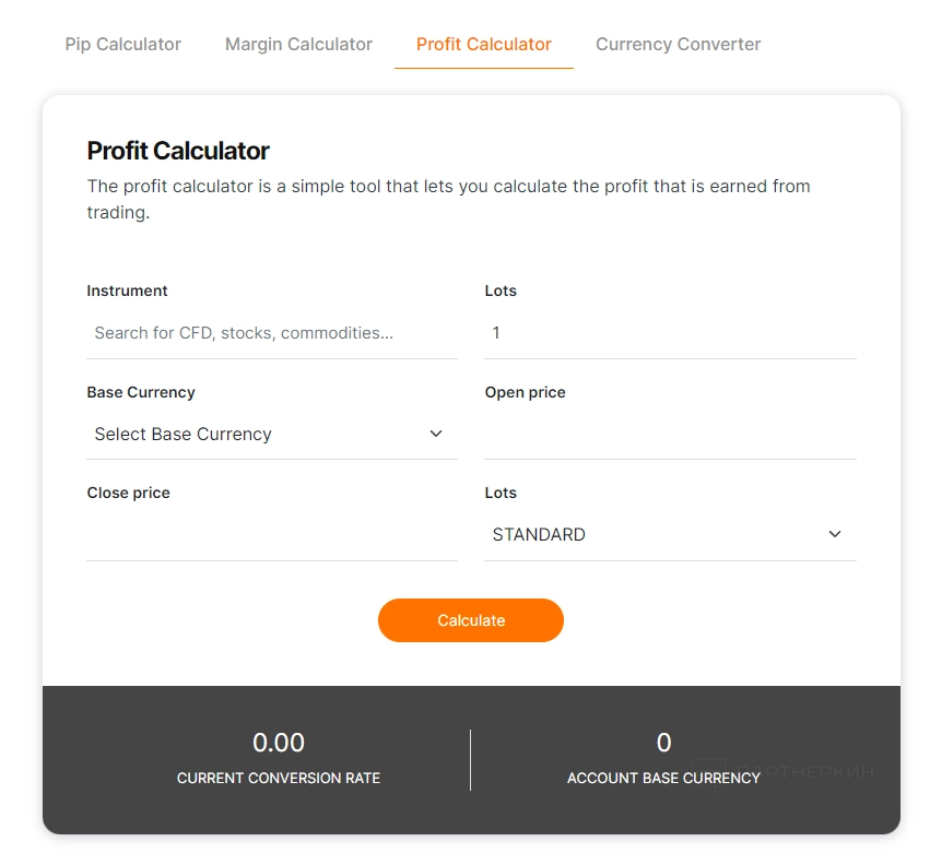 Profit Calculator. Инструмент, который используется для расчета потенциальной прибыли или убытка от торговой позиции. Он позволяет оценить результаты сделки на основе заданных параметров, таких как цена входа и выхода, размер позиции и направление сделки (покупка или продажа).