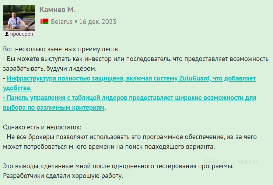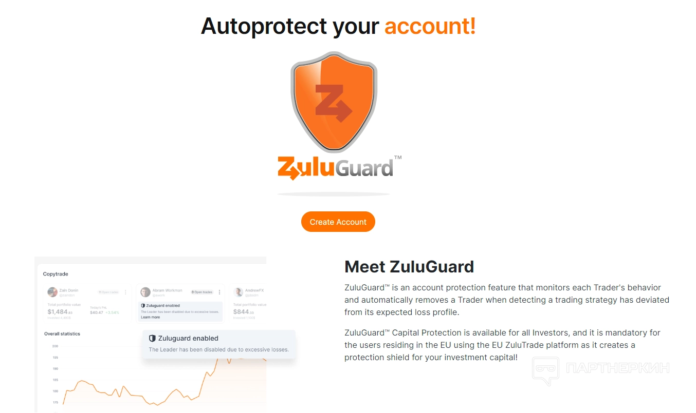 Защита капитала ZuluGuard доступна всем инвесторам и является обязательной для пользователей, проживающих в Евросоюзе. Она создает «защитный щит» для инвестиционного капитала.