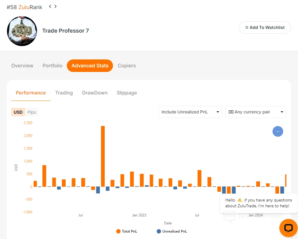 - Advanced Stats. Расширенная статистика для детального погружения в трейдинг определенного пользователя. Здесь представлено еще больше метрик, которые позволят определить успешность трейдера на каком-либо отрезке.