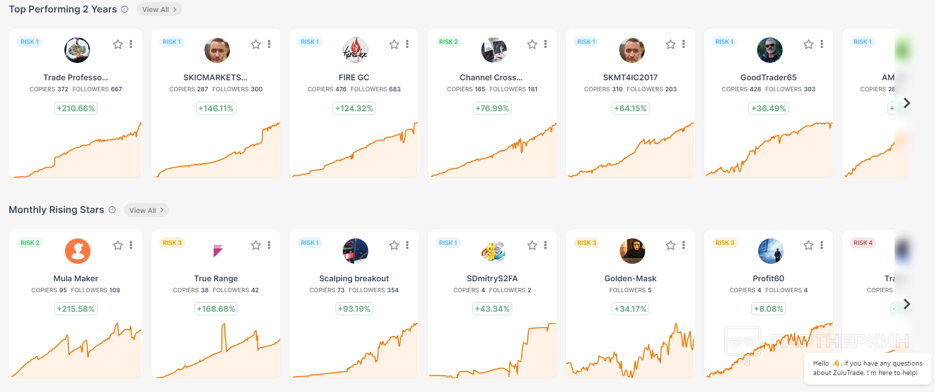 Пользователи также могут посмотреть лучше показатели трейдеров за последние 2 года и ежемесячных восходящих звезд, которые показывают отличные результаты на короткой дистанции.