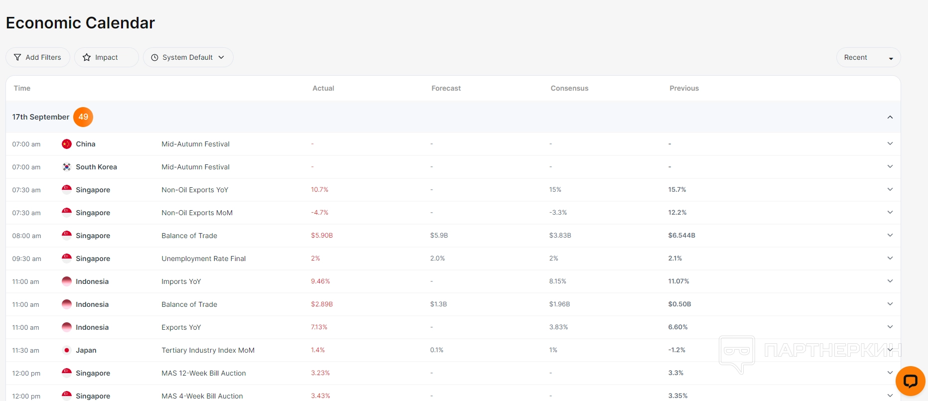- Фильтрация по важности. События классифицируются по уровню их потенциального влияния на рынок (высокое, среднее, низкое). Трейдеры могут сосредоточиться на наиболее значимых.