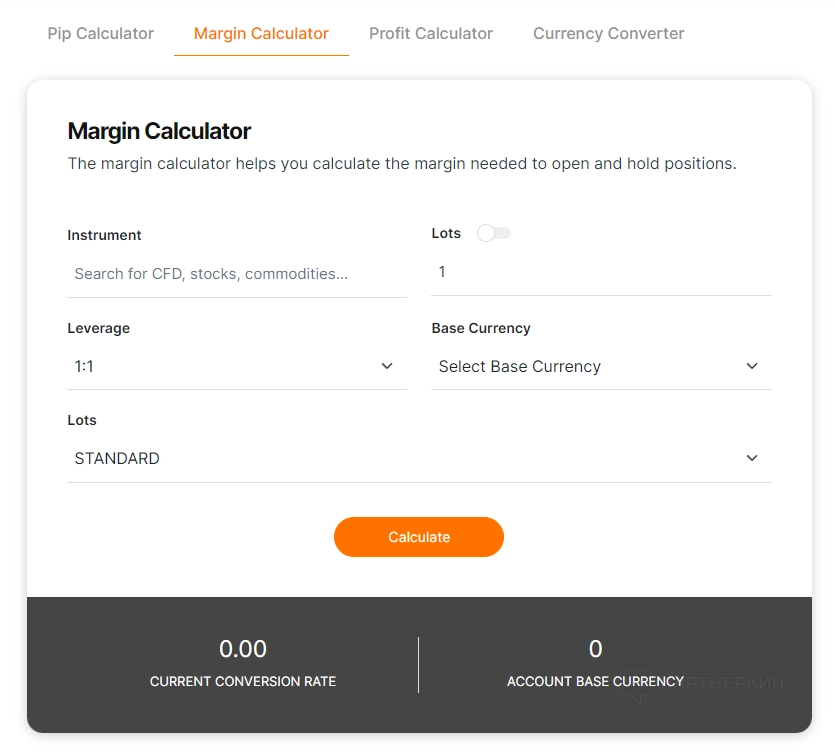 Margin Calculator. Инструмент применяется для расчета маржи, необходимой для открытия торговой позиции на рынке с использованием кредитного плеча. Маржа — это сумма средств, которую брокер требует на вашем счете для покрытия возможных убытков по сделке.