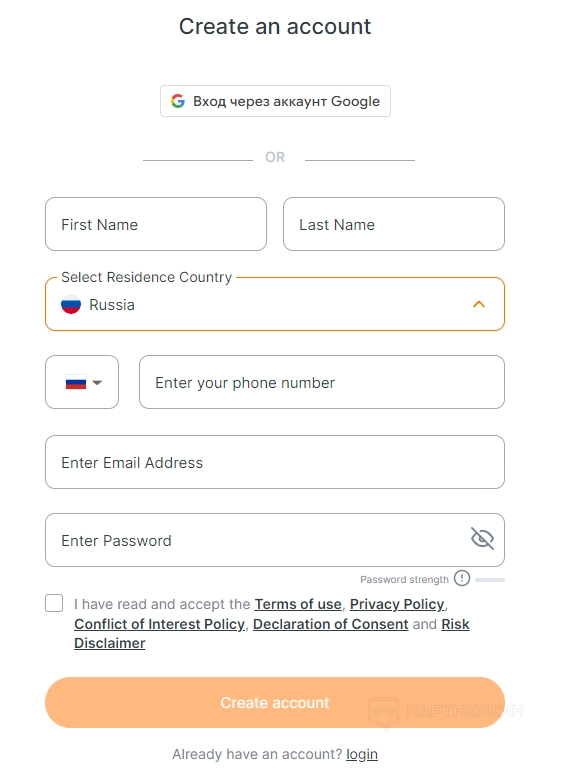 Альтернативный и более быстрый способ зарегистрироваться — войти на сайт через аккаунт Google.