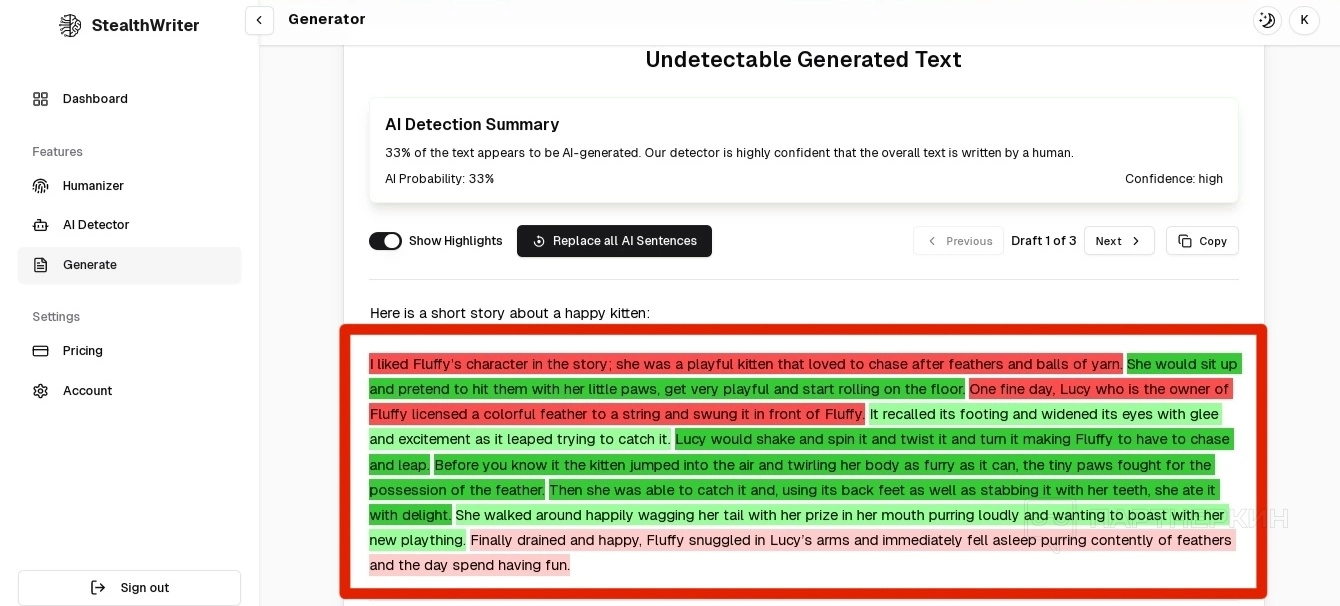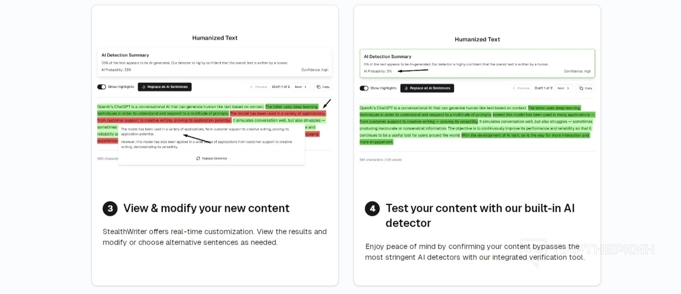 - Готовый вариант перед сохранением можно дополнительно прогнать через специальный детектор для обнаружения участия искуственного интеллекта.