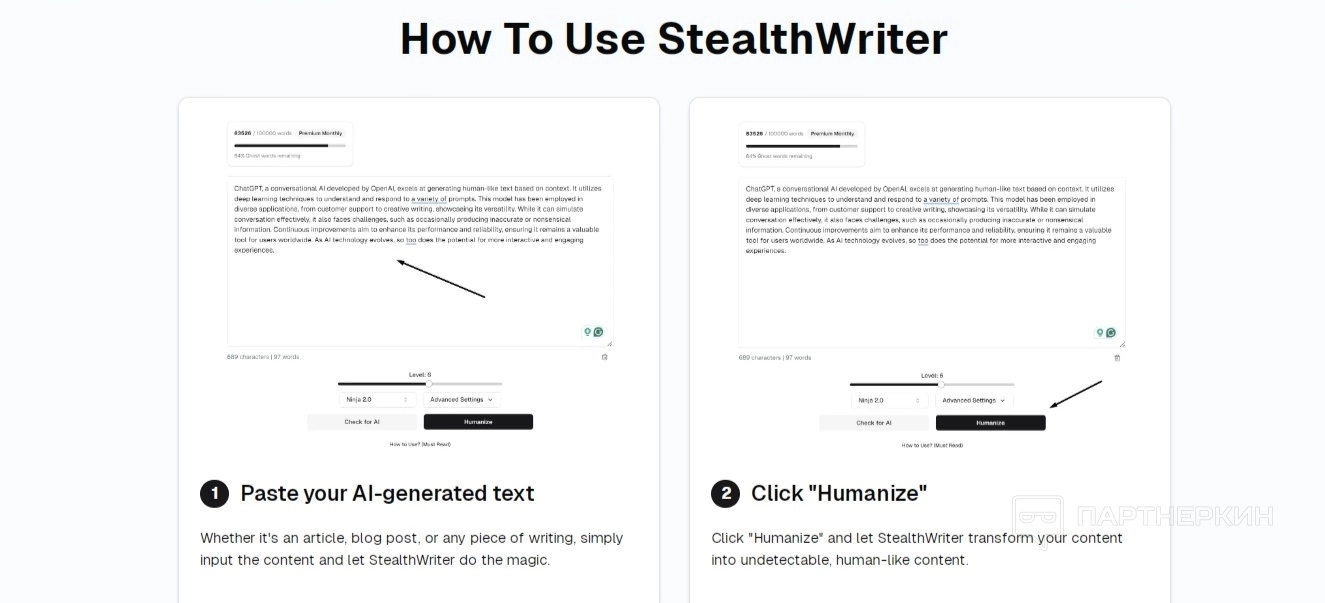 - Humanizer — инструмент гуманизации текстов и перефразирования контента для повышения уникальности, читабельности и целостности.