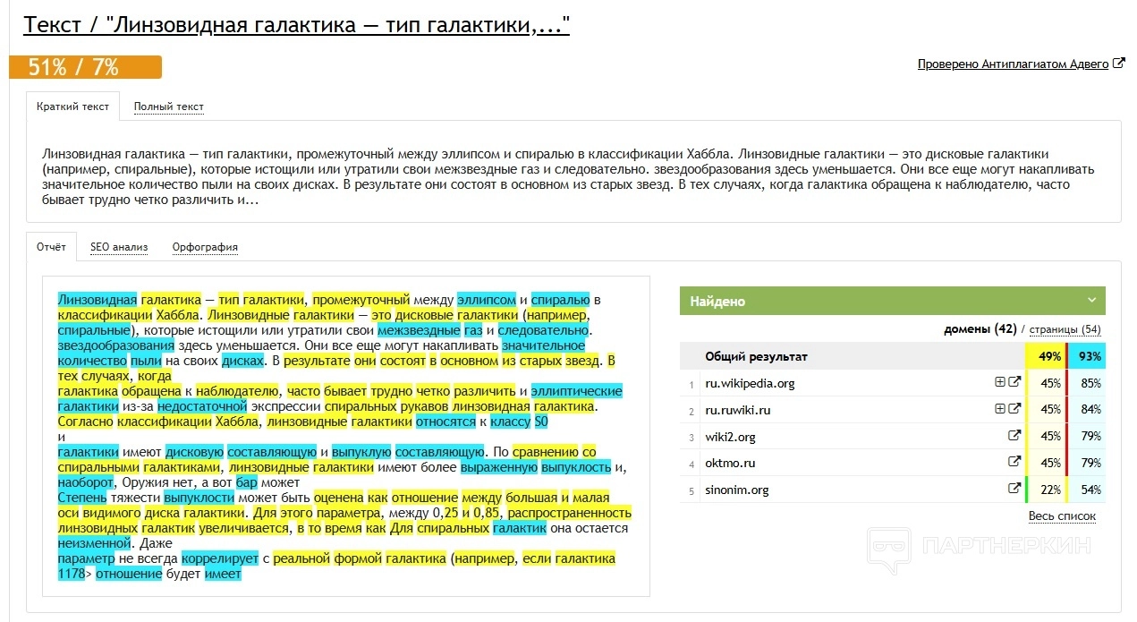 Сервис поменял часть фраз и слов в предложении. Из-за бесплатного режима он перефразировал не полный текст, а его часть. Результат по уникальности по Advego получился низким, ввиду того что сервис в режиме стандарт сделал поверхностный рерайт: