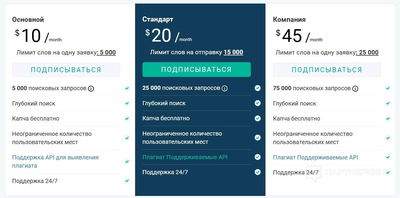 - Возможность загружать несколько файлов, приложения для iOS и Android, расширение для Chrome, а также доступ к API для проверки на плагиат.