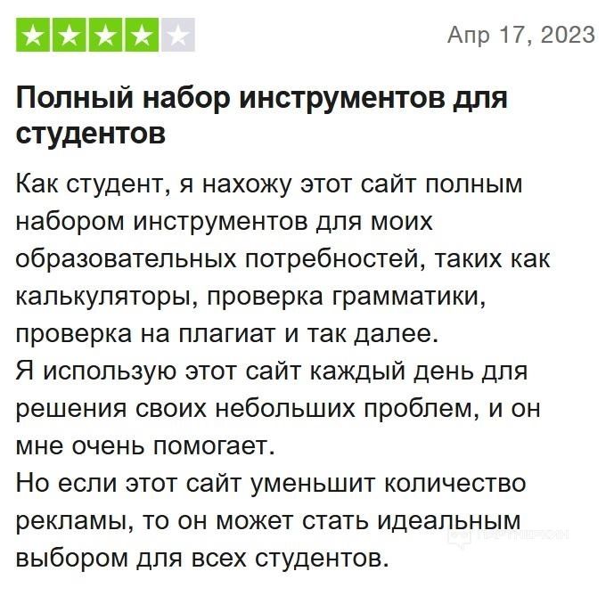 Мы проанализировали в открытых источниках, что говорят пользователи о сервисе. В основном отзывы положительные, особенно от тех пользователей, которые используют сервис бесплатно. Сервис популярен у студентов, которым требуется ежедневно работать с текстами. Так как сервис бесплатный, там много рекламы во free-версии, что может быть небольшим недостатком: