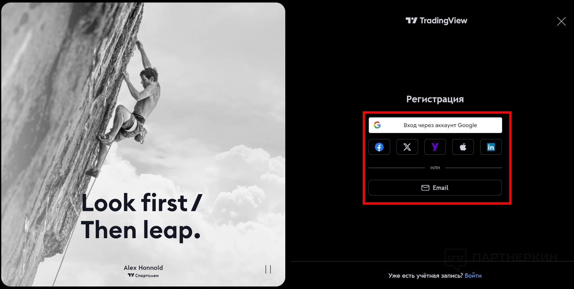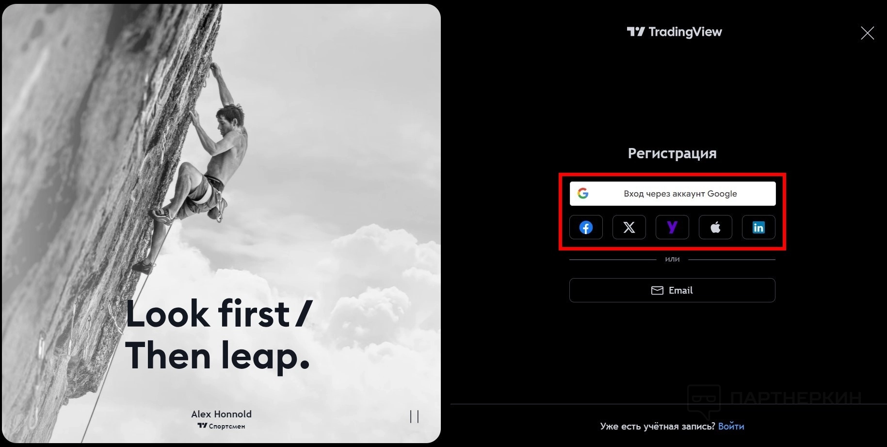 - Выберите способ регистрации: через сторонние платформы или email.