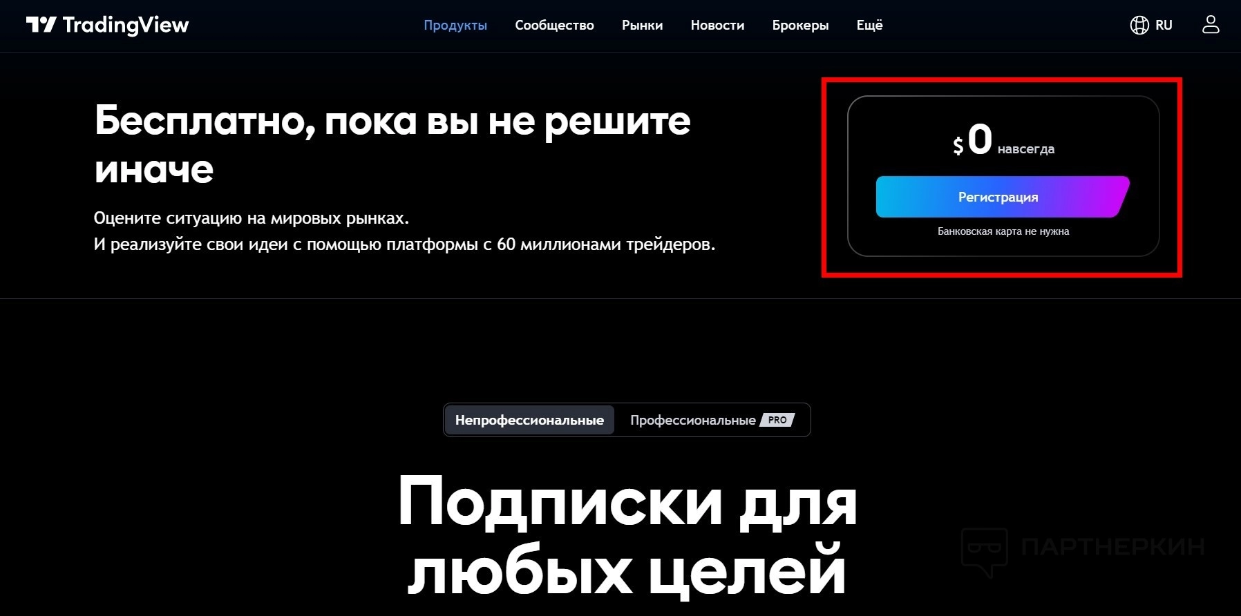 Внимание! Во время регистрации можно переключать виды подписки. На непрофессиональные и профессиональные.