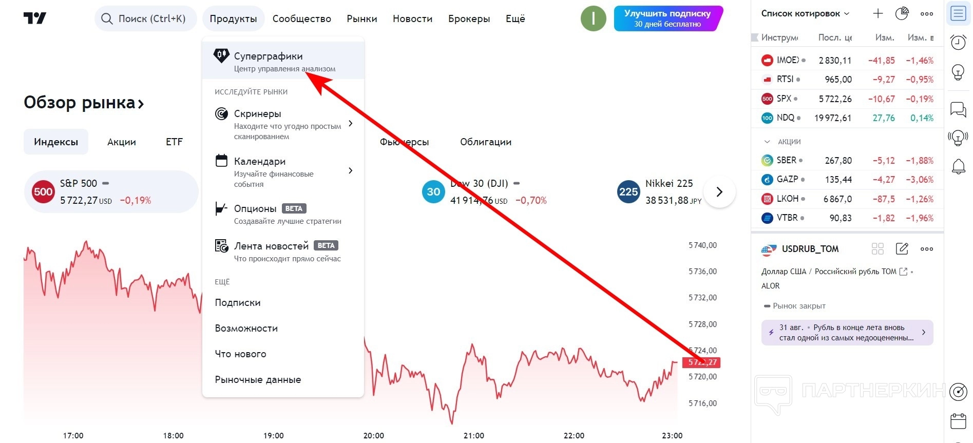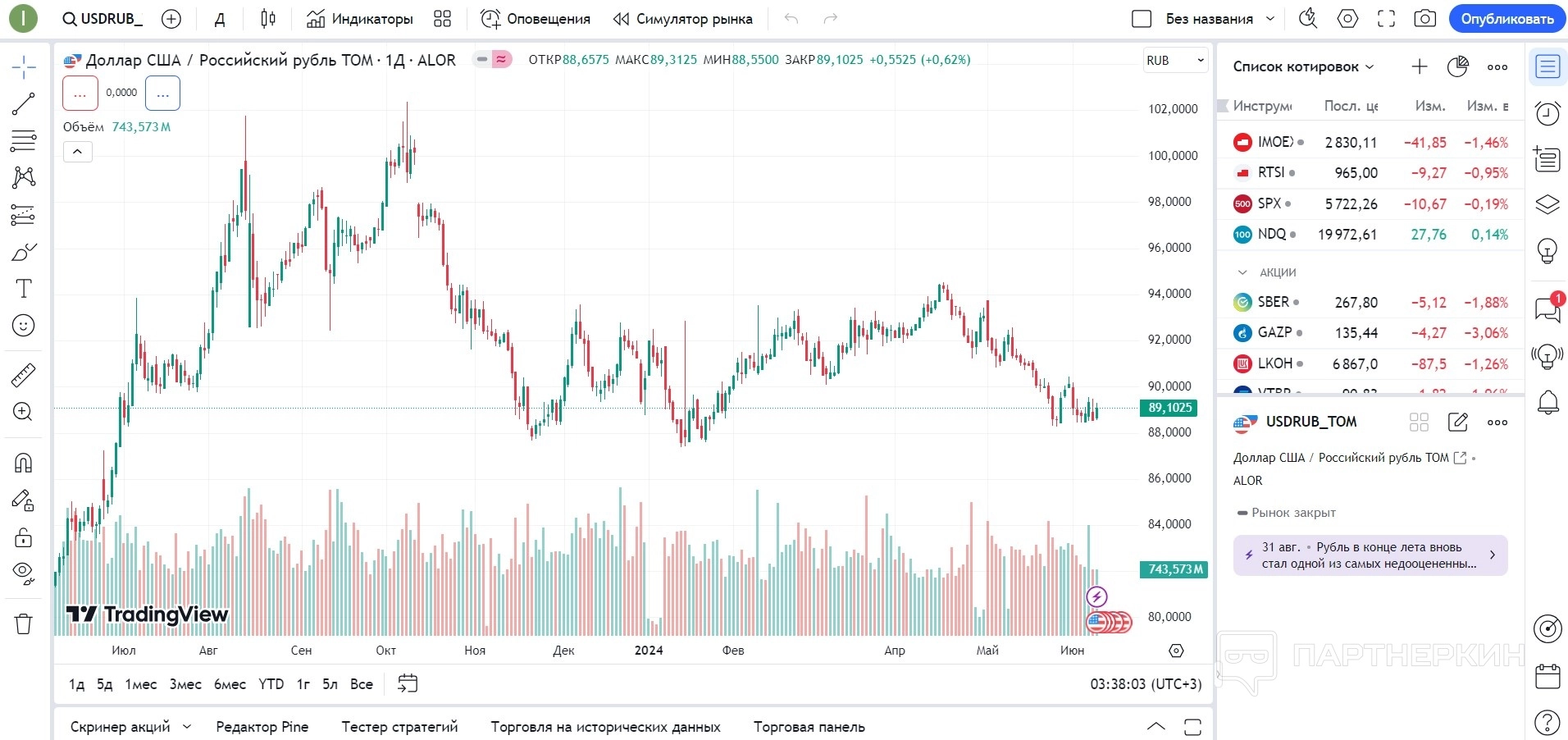 Сервис предлагает широкий набор функций, включая интерактивные графики с разными интервалами, технический анализ с помощью множества индикаторов, разработку и тестирование собственных торговых стратегий. Кроме того,