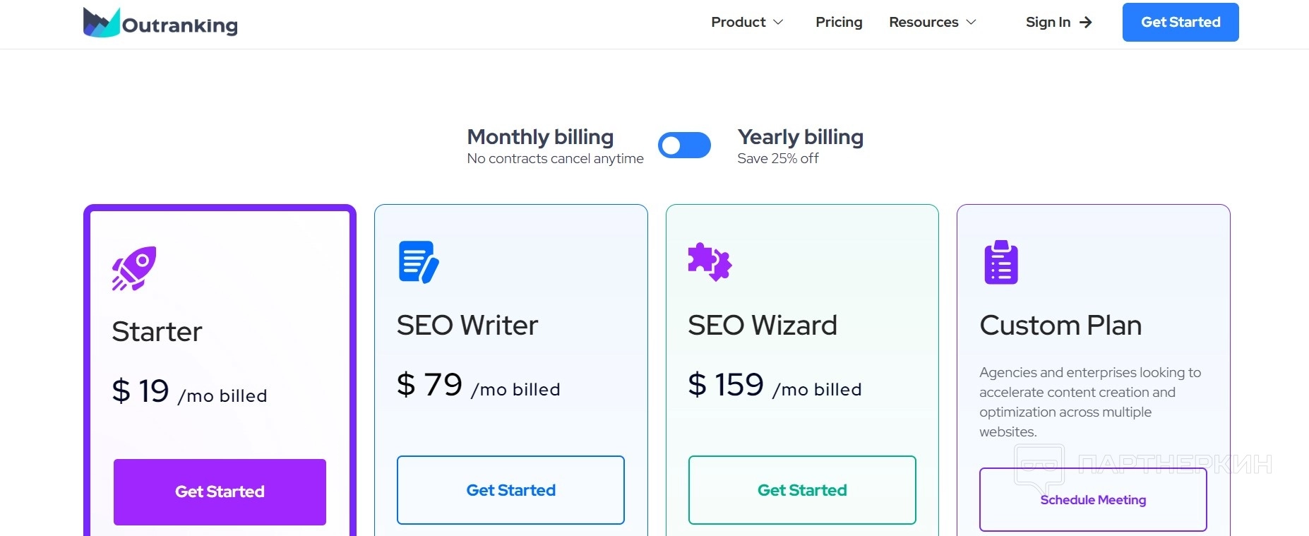 - Starter ($19 в месяц) . Данный тариф включает в себя 4 SEO-документа, AI-оптимизацию, создание контент-брифов и интеграцию. Он может быть полезен для новичков в области веб-разработки.