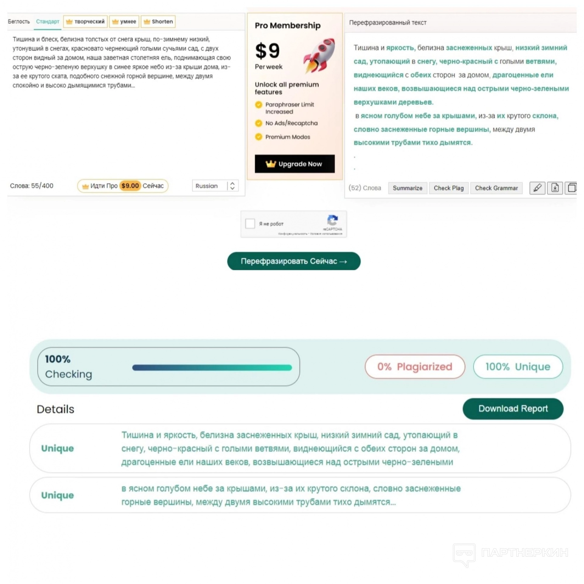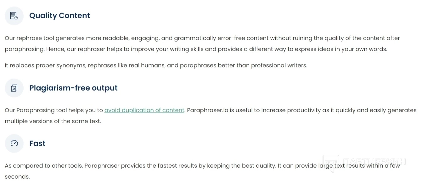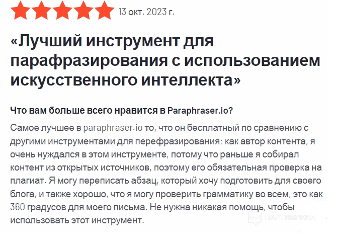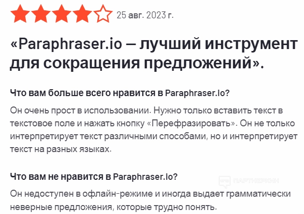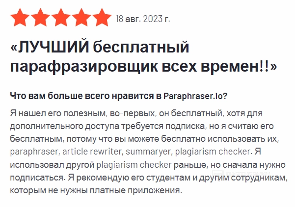 Последний клиент отмечает простоту работы с сервисом и его понятный интерфейс, а также наличие нескольких языков. Однако есть и замечания: Paraphraser недоступен в оффлайн режиме и иногда показывает некачественные результаты: