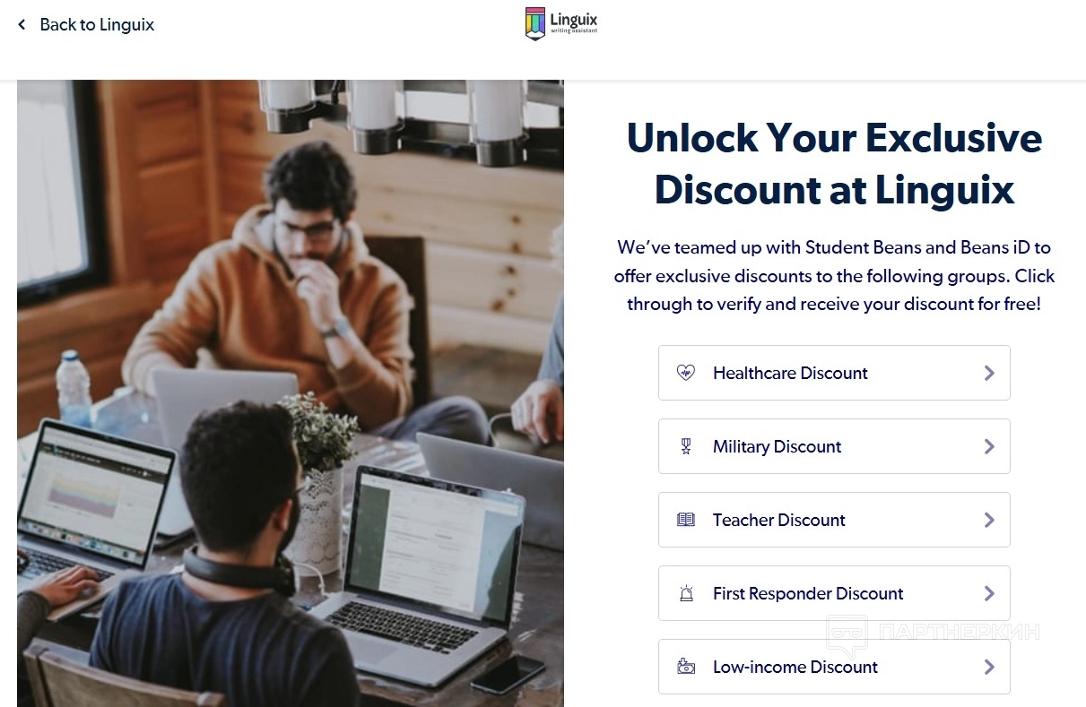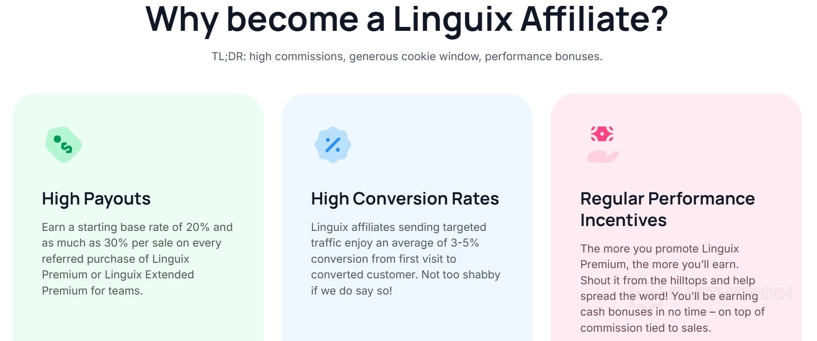 - Партнеры могут зарабатывать комиссионные в размере 20% от каждой продажи Linguix Premium и до 30% для команд.