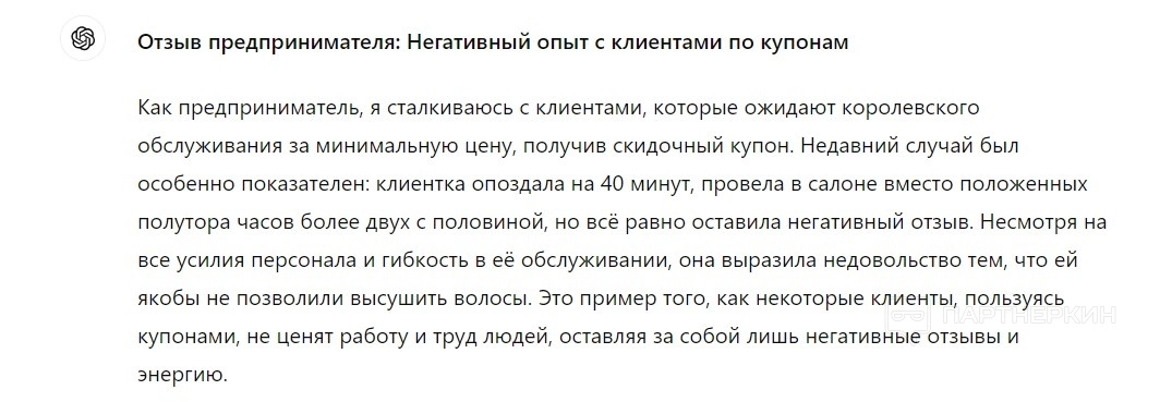 ChatGPT сгенерировала для нас простой отзыв для кэшбек-сервиса. Вот, что получилось: