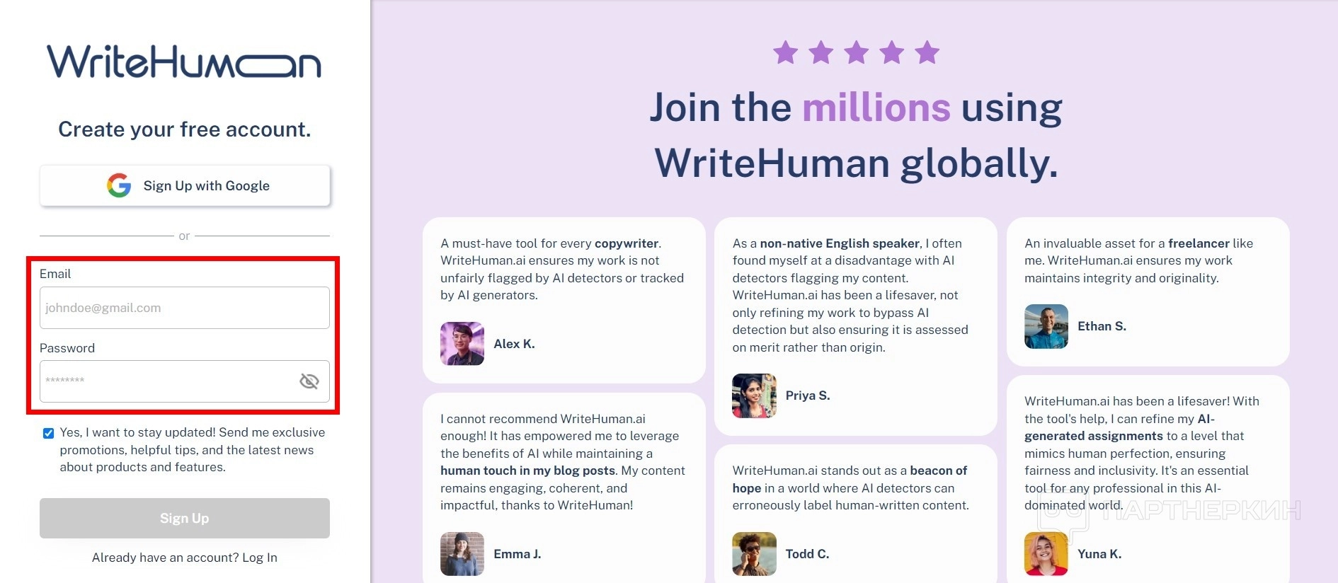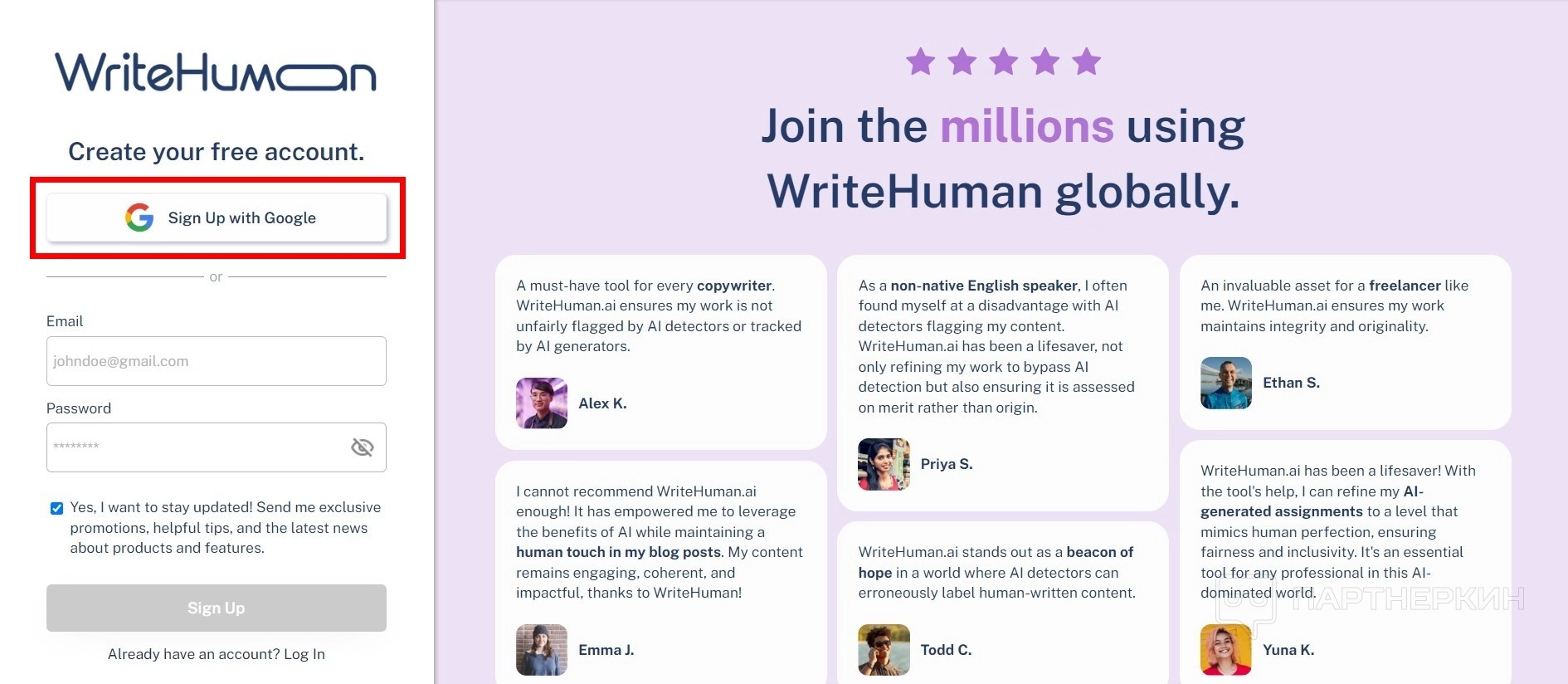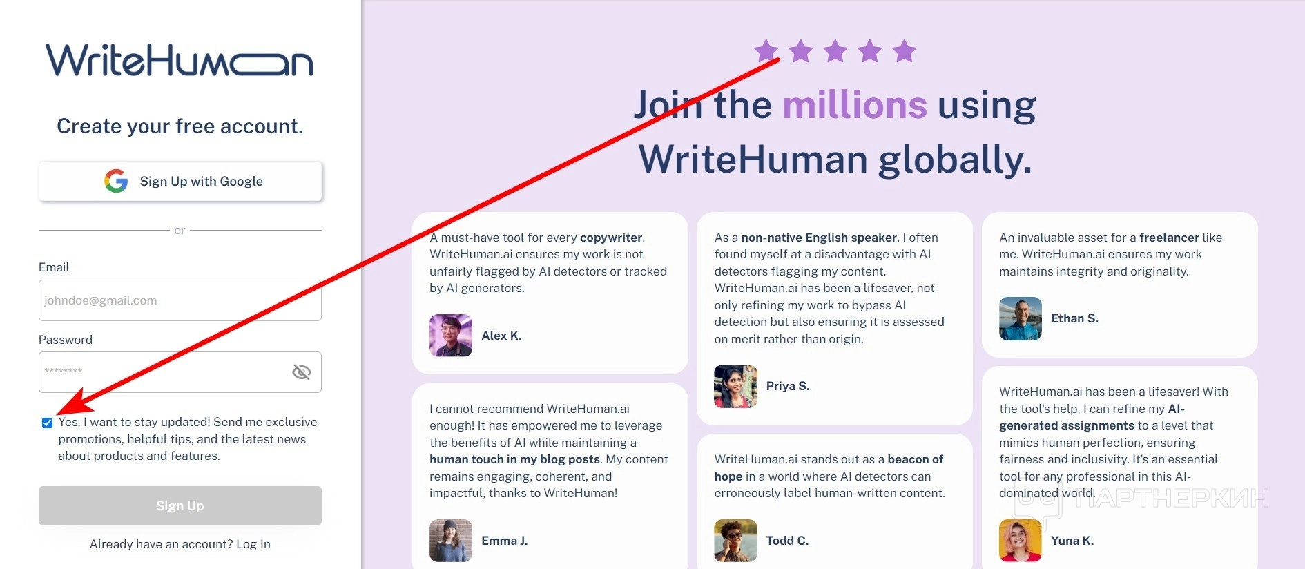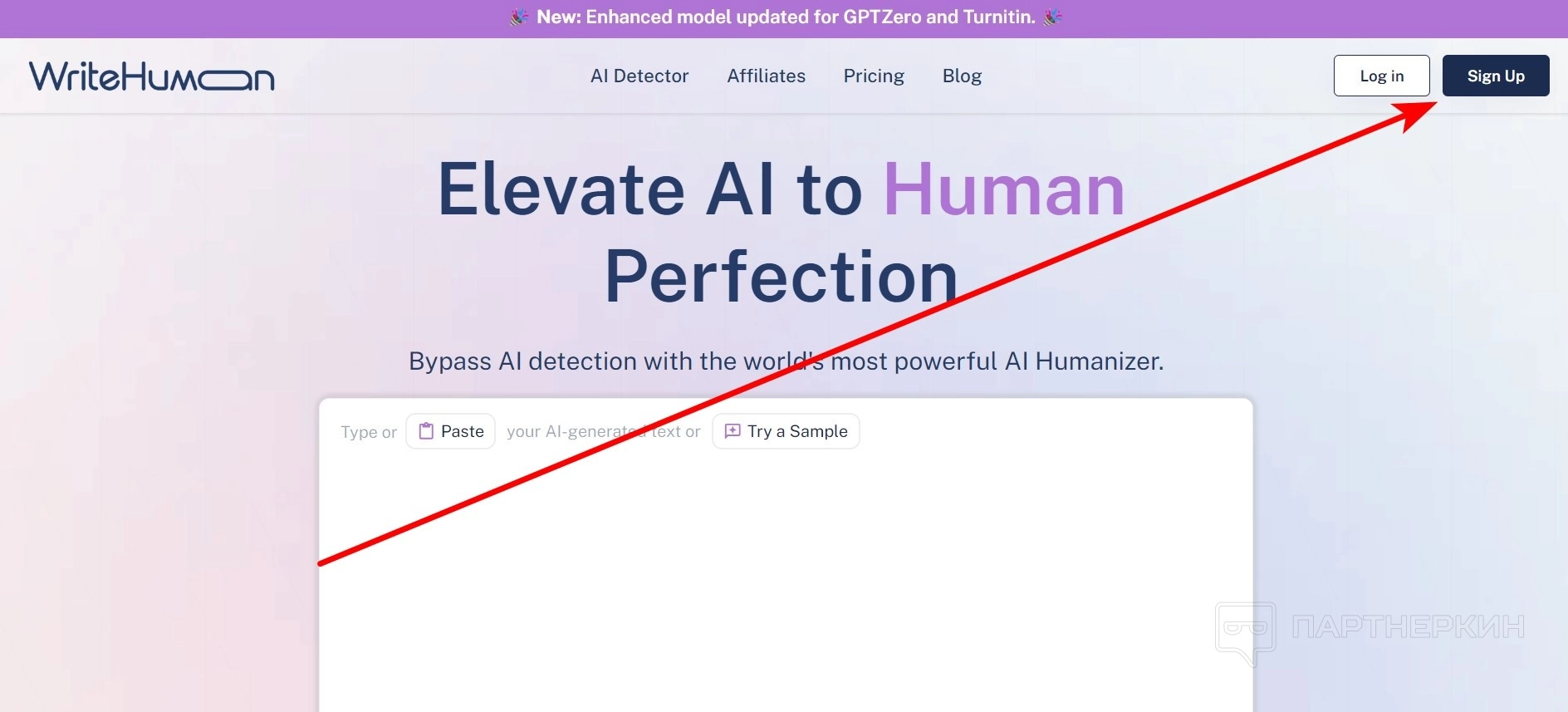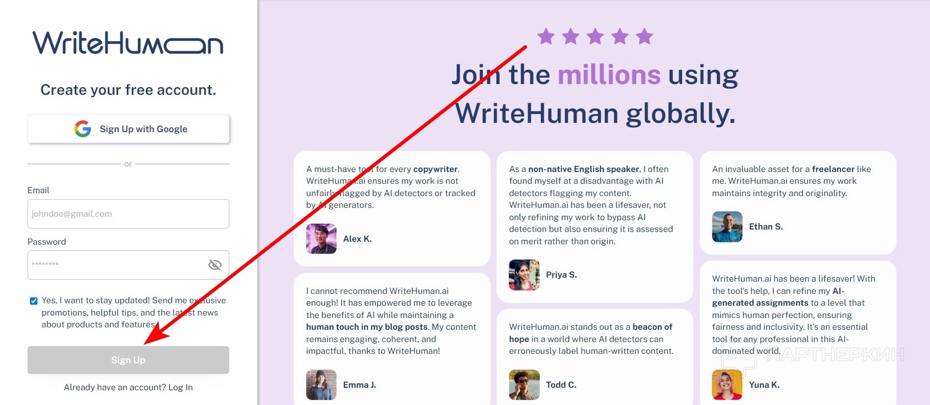 - На главной странице перейдите в раздел Sign Up .