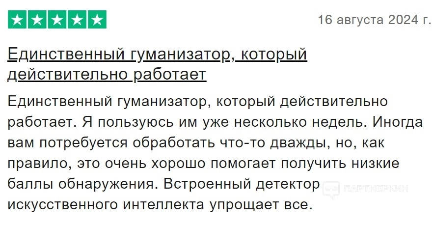 Некоторые пользователи отмечают положительные моменты в работе гуманизатора. Например, один из отзывов утверждает, что программа выполняет свои функции. Только иногда требуется повторная обработка текста для достижения желаемого результата.