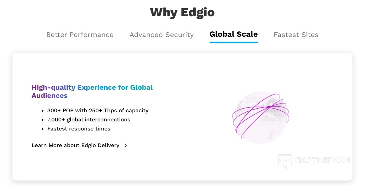 Edgioрасполагает более чем 300 точками присутствия с общей пропускной способностью свыше 250 Тбит/с и более чем 7 000 глобальных взаимоподключений, что обеспечивает самое быстрое время отклика для пользователей независимо от их местоположения. Эти ресурсы позволяют поддерживать высокий уровень производительности, охватывая миллионы пользователей по всему миру.