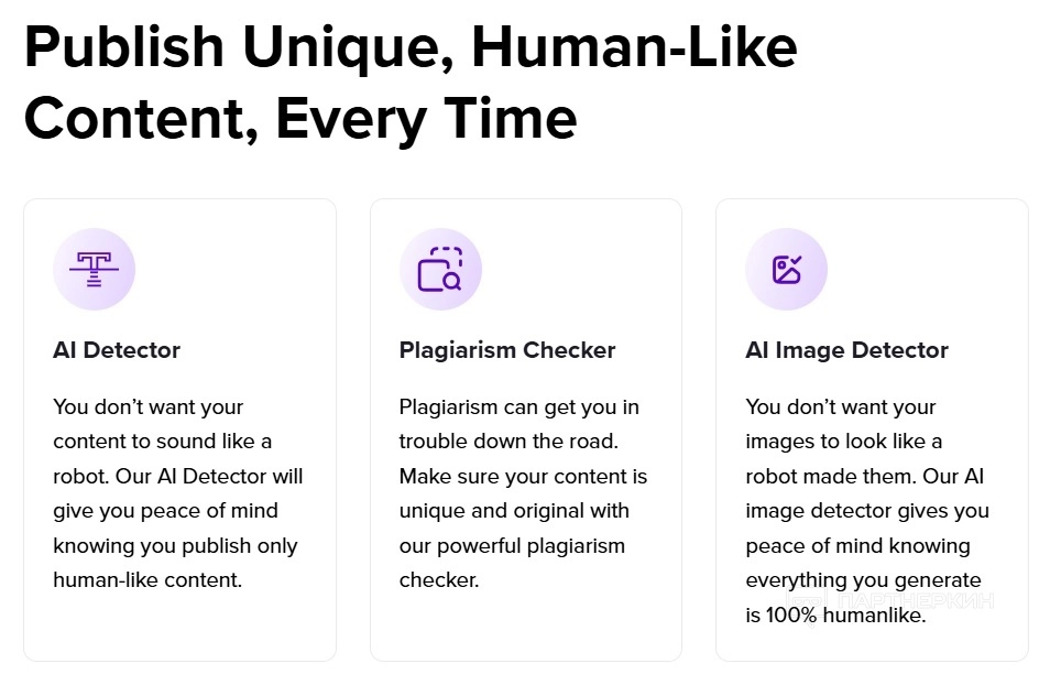 Проверка ИИ сосредоточена на ключевых типах контента, включая страницы веб-сайтов, блоги, социальные сети и маркетинговые электронные письма. Это делает