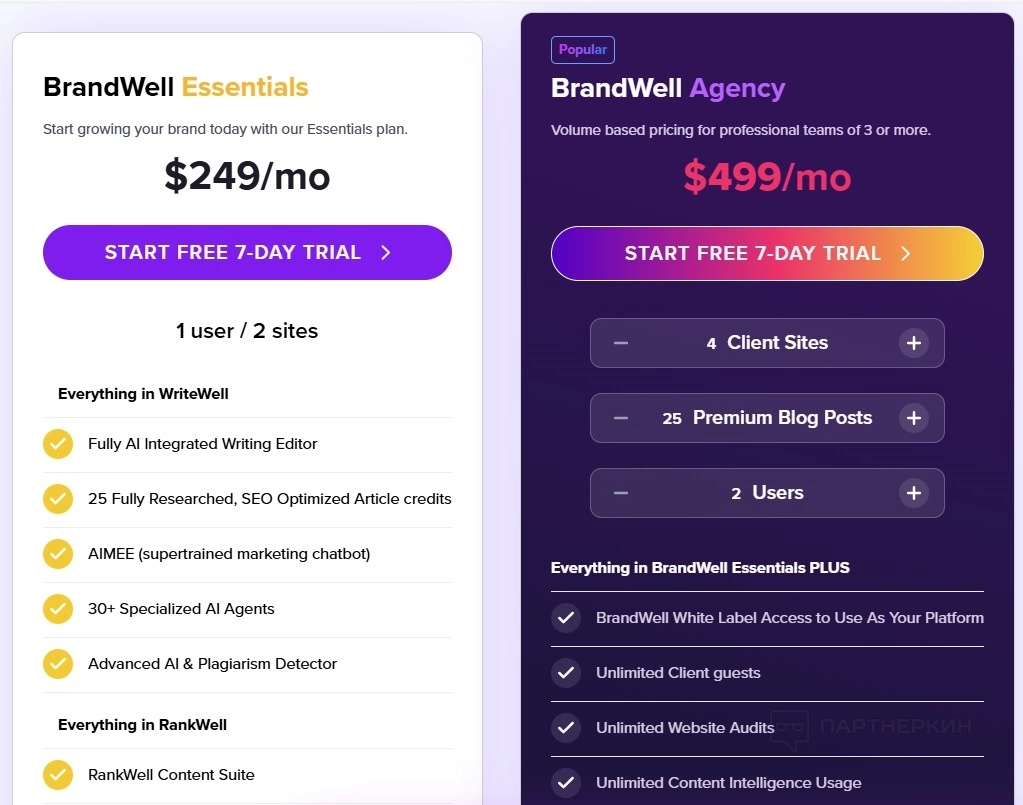 - Пакет RankWell для SEO-оптимизации: включает анализ сущностей, оценку значимости, кластеризацию разделов, неограниченное исследование ключевых слов и конкурентный анализ в режиме реального времени.