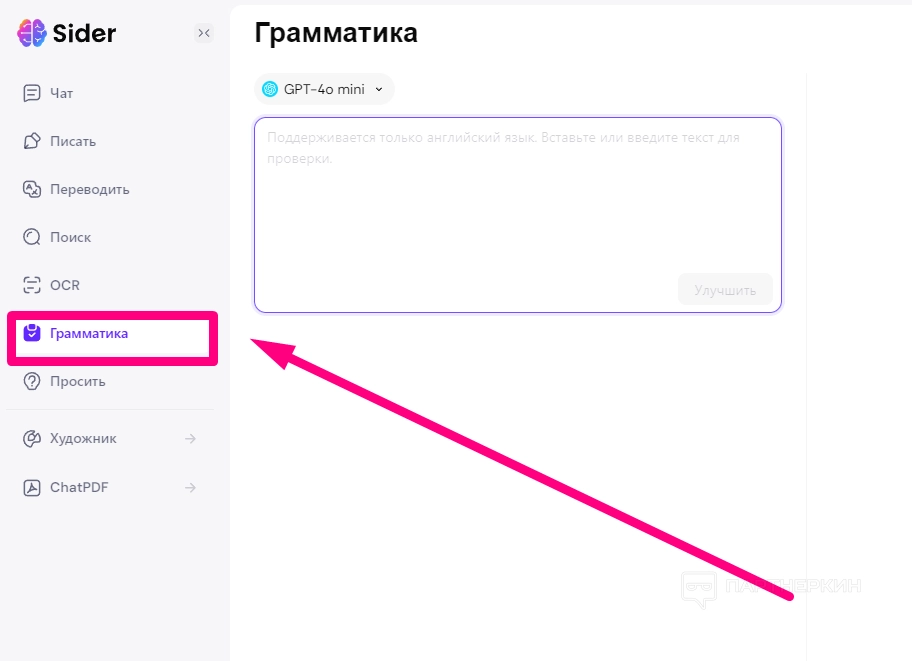 В нижней части можно выбрать одну из доступных моделей ИИ для работы, например, GPT-4, Claude или Gemini.
